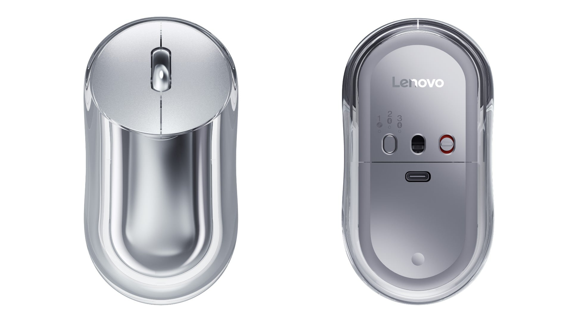 La souris n'est pas différente non plus. Son corps est fait d'un matériau transparent, mais vous ne pouvez voir aucun composant lorsque vous l'observez par le haut ou par le bas. En revanche, lorsque vous la regardez de côté, vous pouvez apercevoir certains éléments à l'intérieur.
