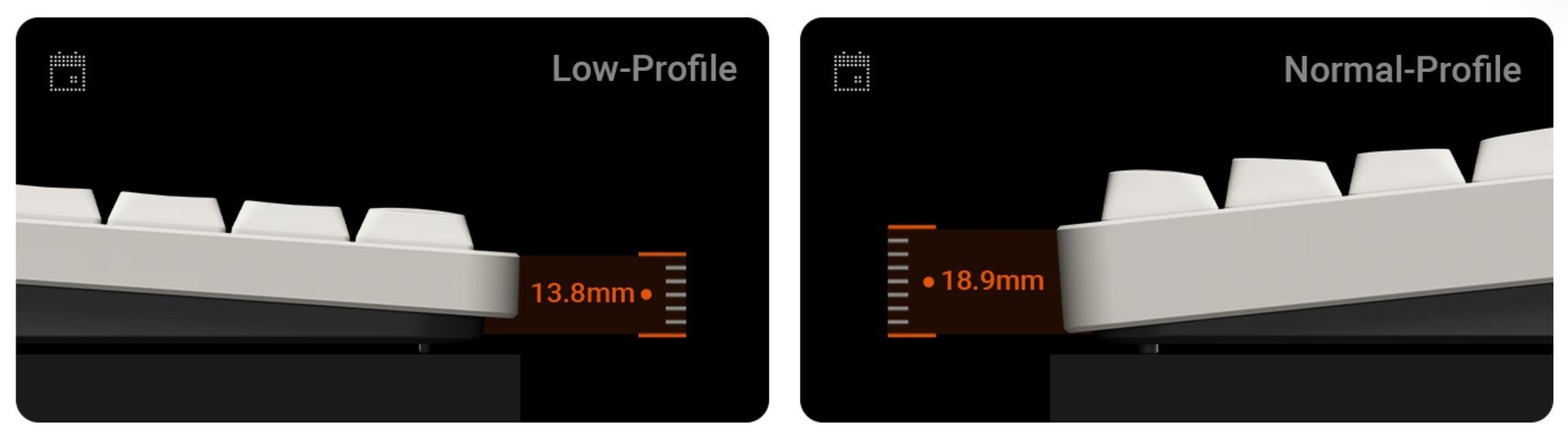 | Compatibilité des commutateurs | Profil bas : Gateron x Nuphy Low Profile 3.0 ; pleine hauteur : commutateurs mécaniques standard pleine hauteur à 5 broches |