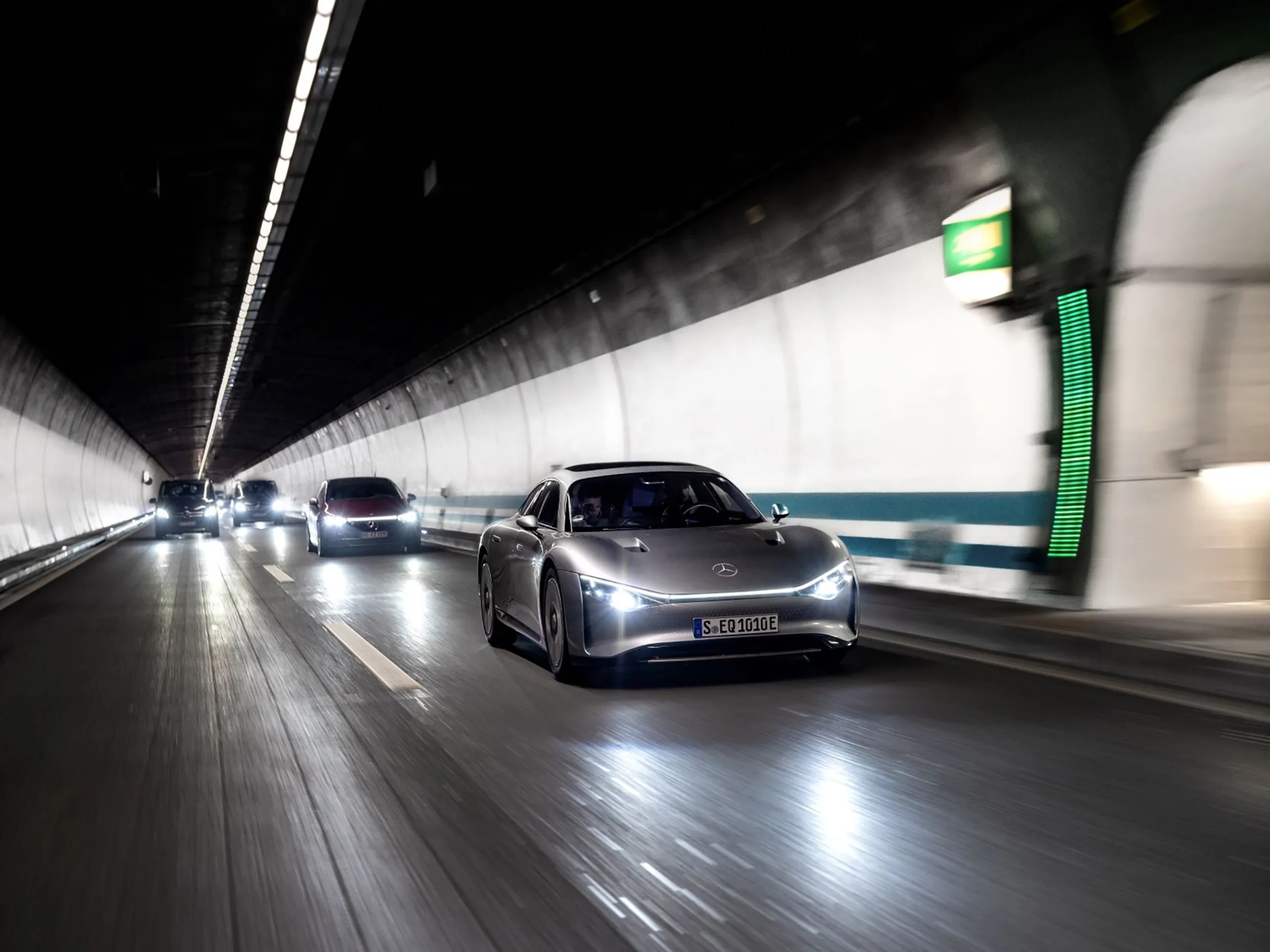 Mercedes-Benz a annoncé sur https://mercedes-benz-media.co.uk/en-gb/releases/1476 que son concept-car électrique VISION EQXX a réalisé un test en conditions réelles, parcourant plus de 1 000 km (~621 miles) avec une seule charge de batterie. Le véhicule est parti de Sindelfingen, en Allemagne, a traversé les Alpes et l'Italie pour rejoindre Cassis en France. Le trajet de 12 heures a été effectué dans les conditions de circulation habituelles, par temps pluvieux et froid, entre 3 et 18°C.