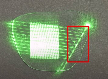 Trois diodes électroluminescentes servent de source lumineuse. La caractéristique la plus distinctive n'est pas le projecteur lui-même, mais la lentille, qui est équipée d'une série de miroirs partiellement transparents qui reflètent la lumière du projecteur exactement là où elle doit être. Cette lentille permet à Meta d'afficher une image qui est clairement visible pour l'utilisateur mais qui ne peut pas être vue de l'extérieur