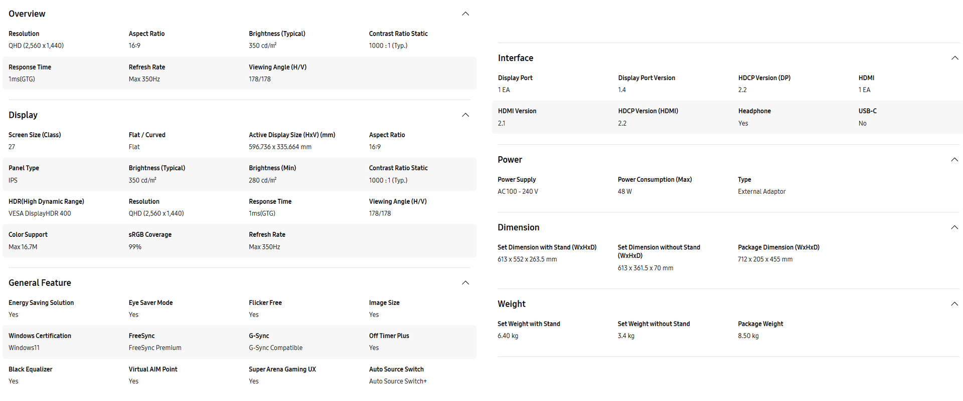 En ce qui concerne les spécifications, elles sont identiques à celles du modèle chinois au modèle chinois. Pour être plus précis, il est équipé d'un écran 27 pouces Fast IPS avec une résolution de 1440p. L'un des points forts de l'écran est son taux de rafraîchissement de 350 Hz. Associé au temps de réponse GtG de 1 ms, l'Odyssey G60F devrait offrir une expérience réactive.