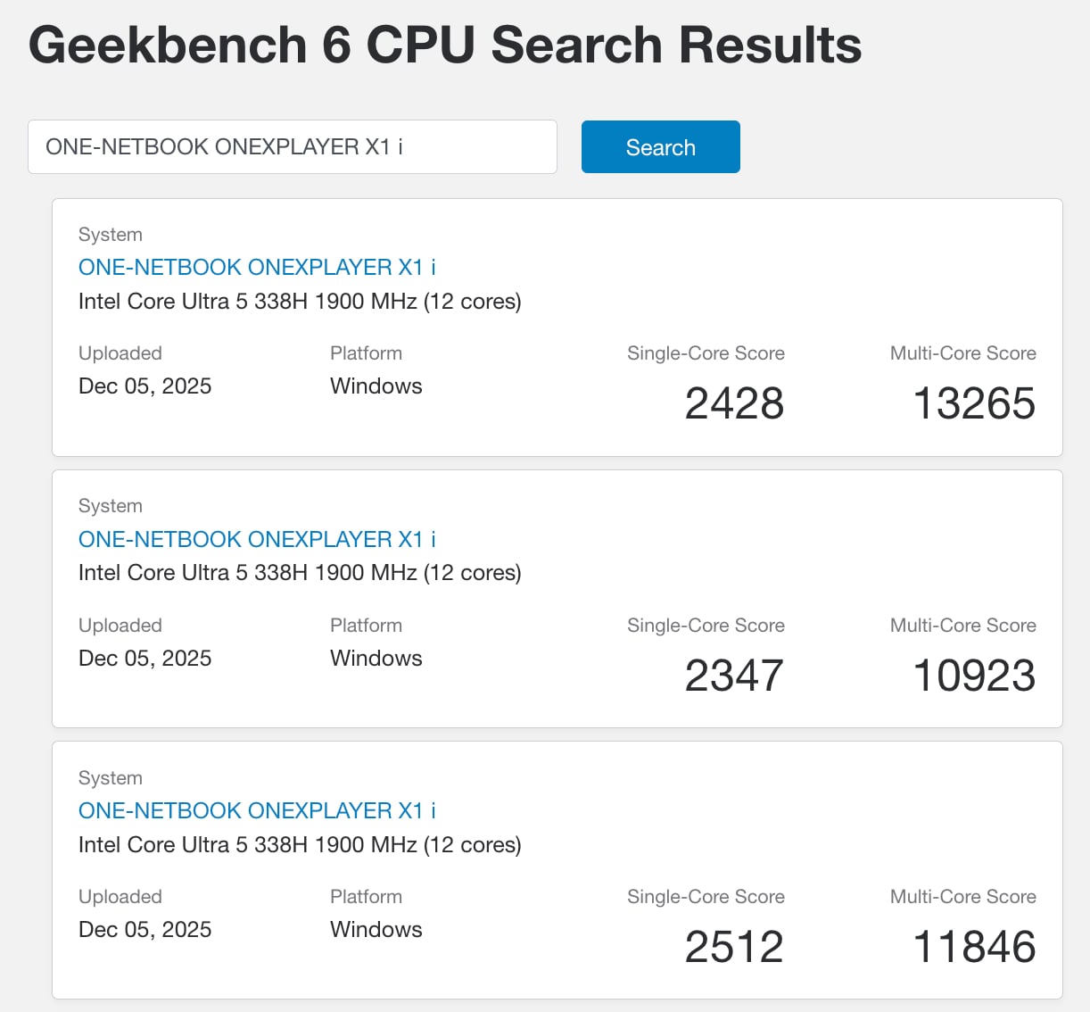 Si l'on met de côté les scores, le Core Ultra 5 338H devrait afficher un TDP de 65-80 W tout en atteignant 4,7 GHz. De plus, Geekbench indique que le prochain OneXPlayer X1 disposera de 32 Go de mémoire vive en option. Vraisemblablement, nous verrons les premiers ordinateurs de poche de jeu Panther Lake être officiellement dévoilés le mois prochain pendant ou légèrement après le CES 2026, qui se déroule entre le 6 et le 9 janvier à Las Vegas. Malheureusement, les autres détails concernant le prochain OneXPlayer X1 restent inconnus pour l'instant.