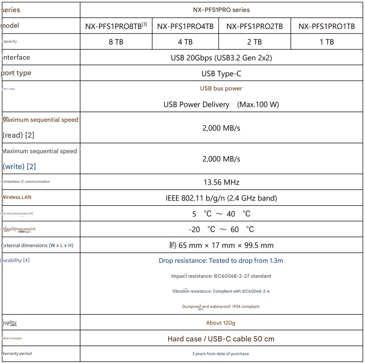 Le Nextorage NX-PFS1PRO a été officiellement dévoilé au Japon. Il s'agit d'un nouveau SSD portable qui peut être acheté avec une capacité de stockage allant jusqu'à 8 To, et quelle que soit la capacité choisie, la vitesse de transfert du disque est évaluée à 20 Gbps, via l'interface USB 3.2 Gen 2x2 Type-C.