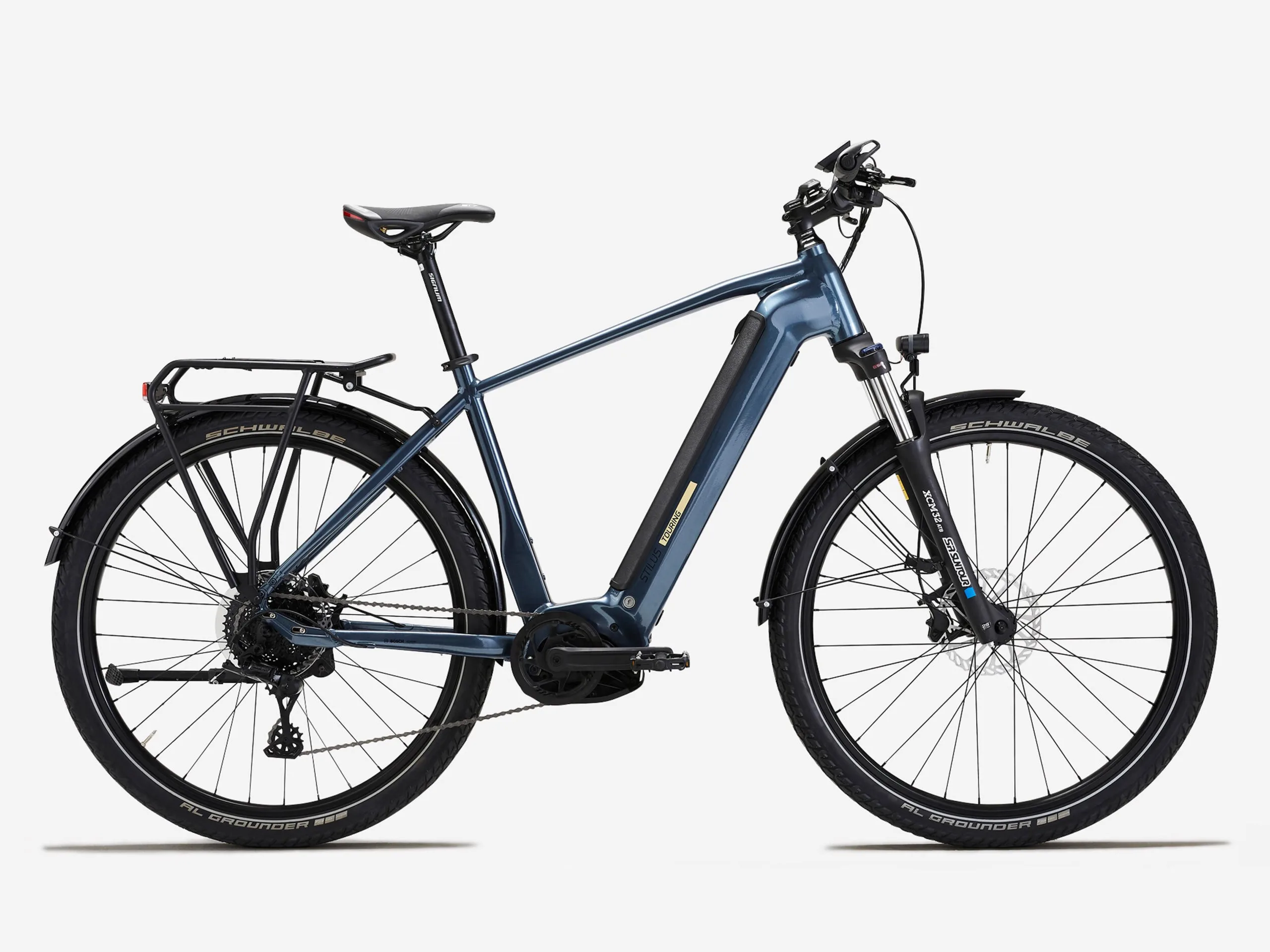 Outre la conception du cadre, une autre différence significative entre l'ancienne et la nouvelle version du E-Touring est l'ajout d'une fourche à suspension SR Suntour XCM32 ATB avec un débattement de 100 mm. Pour le reste, les deux vélos électriques sont identiques, propulsés par un moteur Bosch Performance Line CX Gen4 monté au centre, avec un couple de 85 Nm et une assistance allant jusqu'à 340 %, limité à une vitesse maximale de 25 km/h. Un capteur de couple permet d'ajuster la puissance de la bicyclette en fonction des besoins. Un capteur de couple ajuste la puissance en fonction de votre rythme, et la batterie Bosch PowerTube 750Wh vous permet de rouler avec assistance jusqu'à 130 km (~81 miles). L'e-bike est équipé d'un écran Bosch Kiox pour la navigation, les statistiques comme votre vitesse actuelle et le contrôle de l'outil eBike Lock. Il est également équipé de pneus Schwalbe 29x2,35 pouces, d'un dérailleur arrière Microshift Advent X 10 vitesses, de freins à disque hydrauliques Clarks M2 et de feux à l'avant et à l'arrière.