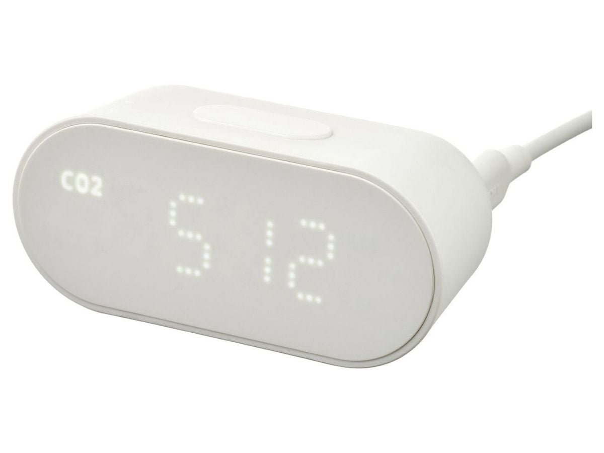 Le capteur Alpstuga d'IKEA est conçu pour aider les utilisateurs à surveiller la qualité de l'air dans une pièce particulière de leur maison. Sur l'écran en forme de pilule, vous pouvez voir les mesures des niveaux de dioxyde de carbone et de particules PM2,5, ainsi que la température actuelle. Lorsqu'il n'est pas utilisé, l'écran peut afficher l'heure.