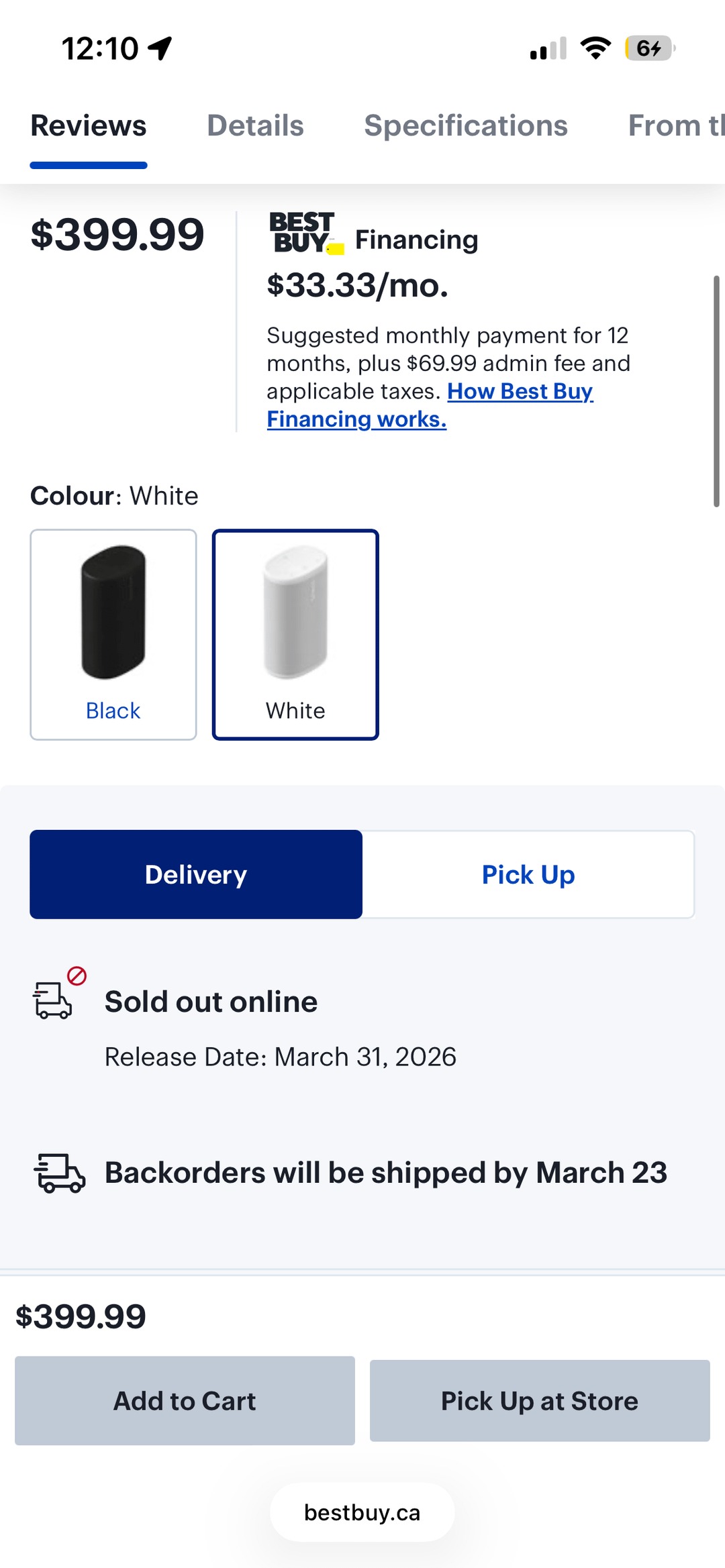 Le Sonos Play est proposé au prix de 399 $ CA (~293 $ / 250 € / 218 £). Sa sortie est prévue le 31 mars et les commandes seront expédiées le 23 mars. On peut donc supposer que le lancement du Sonos Play n'aura lieu que dans quelques semaines.