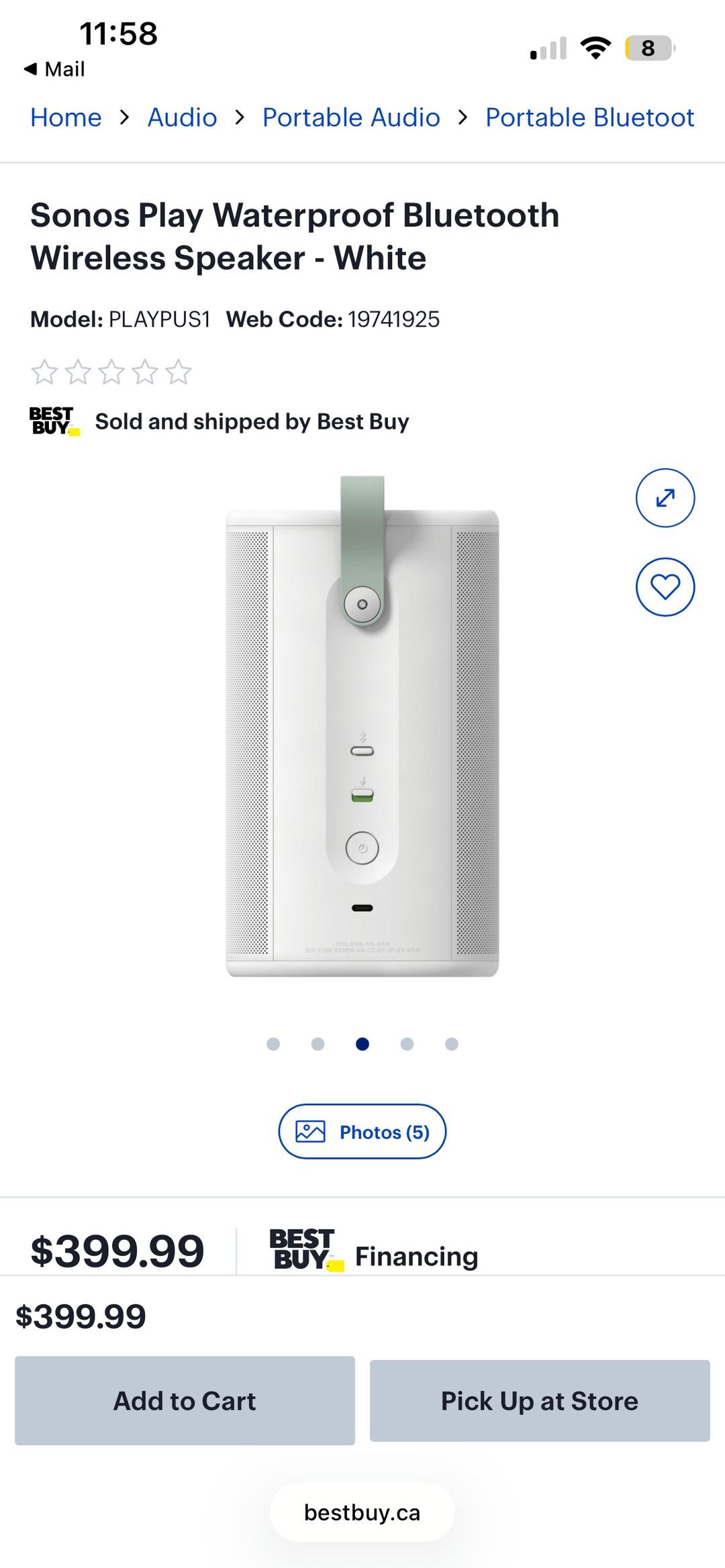 La fiche produit indique que le Sonos Play est un haut-parleur sans fil Bluetooth étanche, et bien que ce ne soit pas une première pour un haut-parleur Sonos, la fiche technique indique qu'il a un indice de résistance à la poussière et à l'eau IP67. À titre de comparaison, le Move 2(disponible sur Amazon pour 499 $) a un indice IP56.