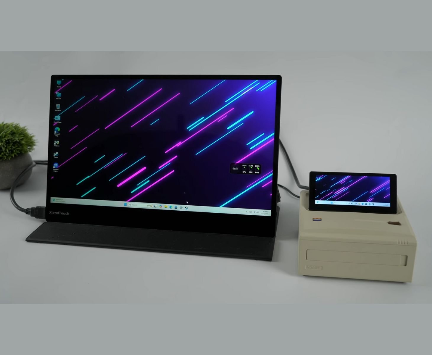 Selon la vidéo, l'écran rabattable cache la prise audio et quatre ports USB 3.2, tandis que l'arrière abrite le connecteur d'alimentation, deux ports HDMI pleine taille, un port USB4 (40 Gbps), un port USB-C 3.2, un double Ethernet 2,5 GbE, un port USB 2.0 et un port USB 3.2 supplémentaire. Ayaneo propose l'AM01S avec plusieurs options d'APU, que vous pouvez lire ici.