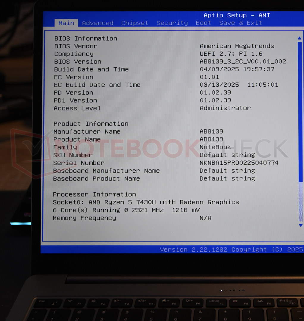 Une extension avérée à d'autres fabricants créerait une nouvelle dynamique dans la mesure où le fabricant du produit original se retrouverait alors sous les feux de la rampe. Chuwi et Ninkear font tous deux appel à des ODM (Original Design Manufacturers - dans notre cas, Emdoor Digital) pour produire leurs ordinateurs portables, qui construisent des appareils selon les exigences et les plans d'un fabricant et les livrent prêts à l'emploi. Cela inclut également l'unité centrale et le BIOS associé, qui ont dû être modifiés en conséquence pour que la tromperie soit possible en premier lieu.