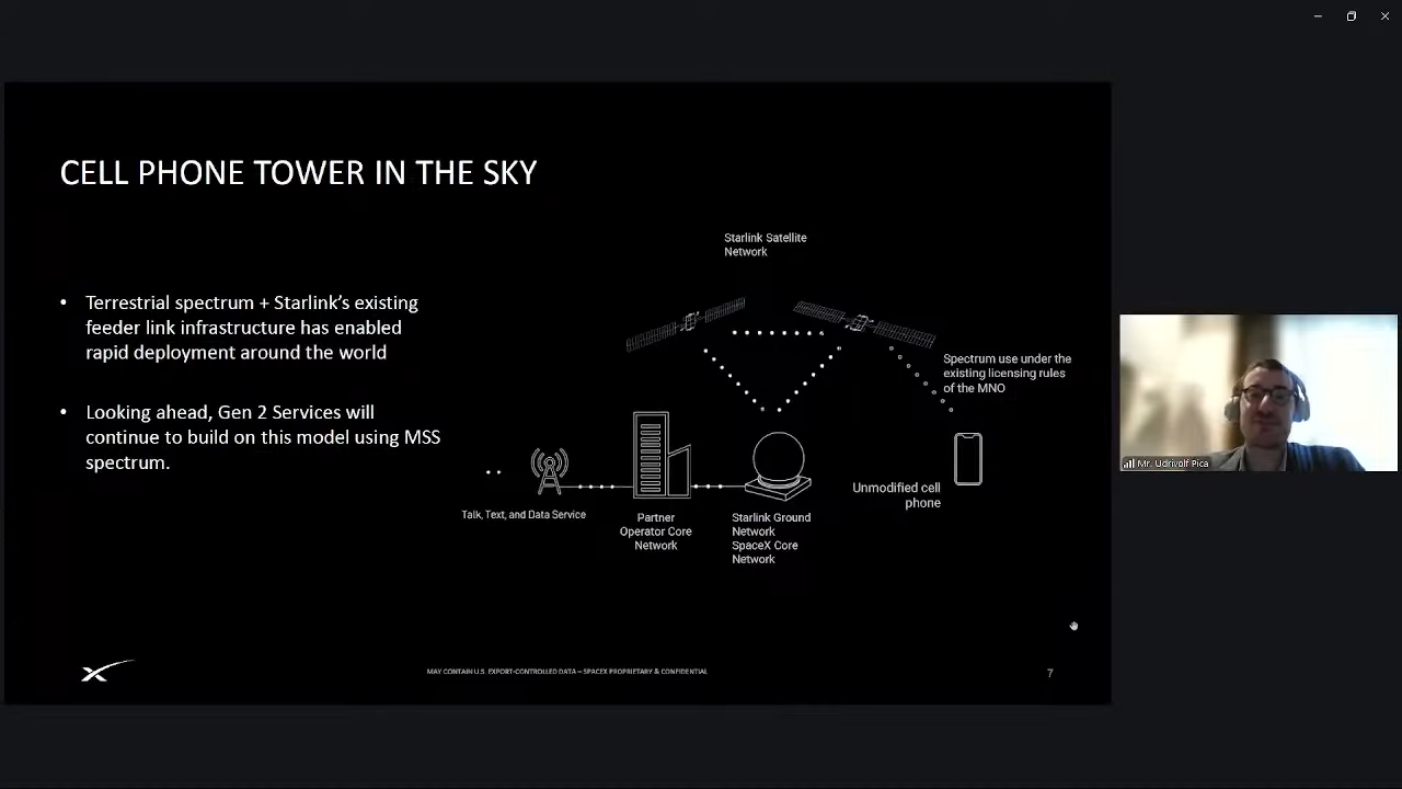 Aujourd'hui, Udrivolf Pica, de SpaceX, est convaincu que Starlink exploitera à la fois le spectre des services mobiles par satellite (MSS) dans la bande des 2 GHz et le spectre de l'UIT pour étendre la couverture lorsque l'accord avec EchoStar sera conclu vers la fin de l'année 2027. Le moment sera"idéal pour la préparation de l'écosystème des appareils et la prise en charge de la bande 3GPP n256", a déclaré M. Pica, faisant allusion à la collaboration de SpaceX avec des fabricants de puces pour téléphones tels que Qualcomm, MediaTek ou Samsung pour développer de développer une connectivité Internet directe par satellite Starlink dans leurs modems de puces mobiles.