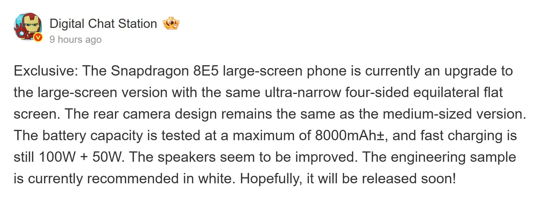 Digital Chat Station note également que ce prochain téléphone phare sera équipé du Snapdragon 8 Elite Gen 5, le même SoC qui équipe les autres appareils de la série Xiaomi 17. La face avant aura apparemment le même design que les autresla face avant aurait le même design que les autres, avec des bords fins aux quatre coins, mais on ne sait pas si l'arrière sera doté d'un écran secondaire.