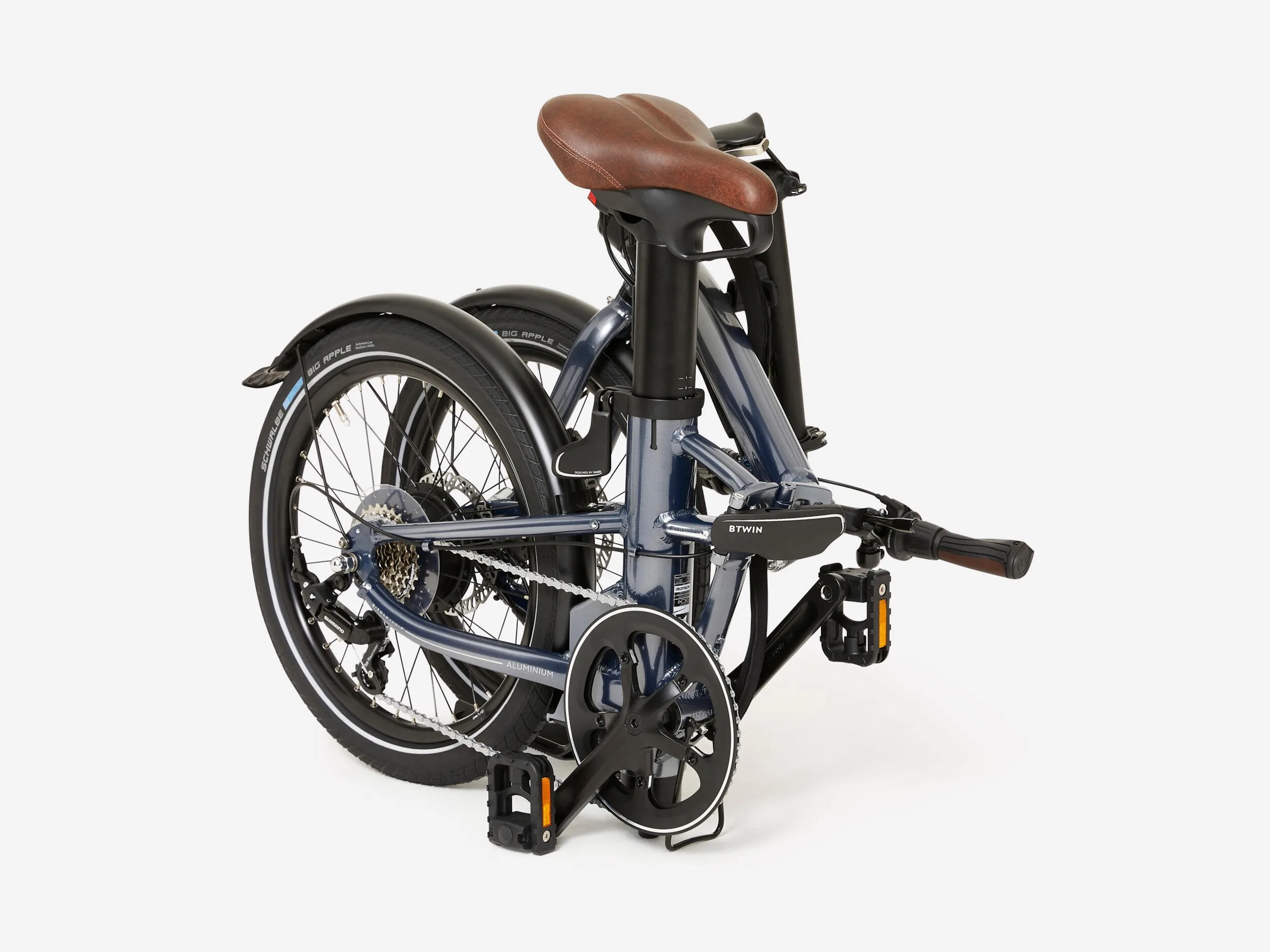 Le nouveau Btwin E-FL 900 sera équipé d'un moteur arrière Mahle X30 plus puissant, avec un couple pouvant atteindre 40 Nm. Cependant, la batterie qui l'accompagne est plus petite, avec une capacité de 171 Wh pour une autonomie de 45 km en mode éco. Autre changement, les pneus Schwalbe 16 x 2 pouces sont plus petits ; le Btwin E-Fold 900 a des pneus plus larges de 20 pouces.