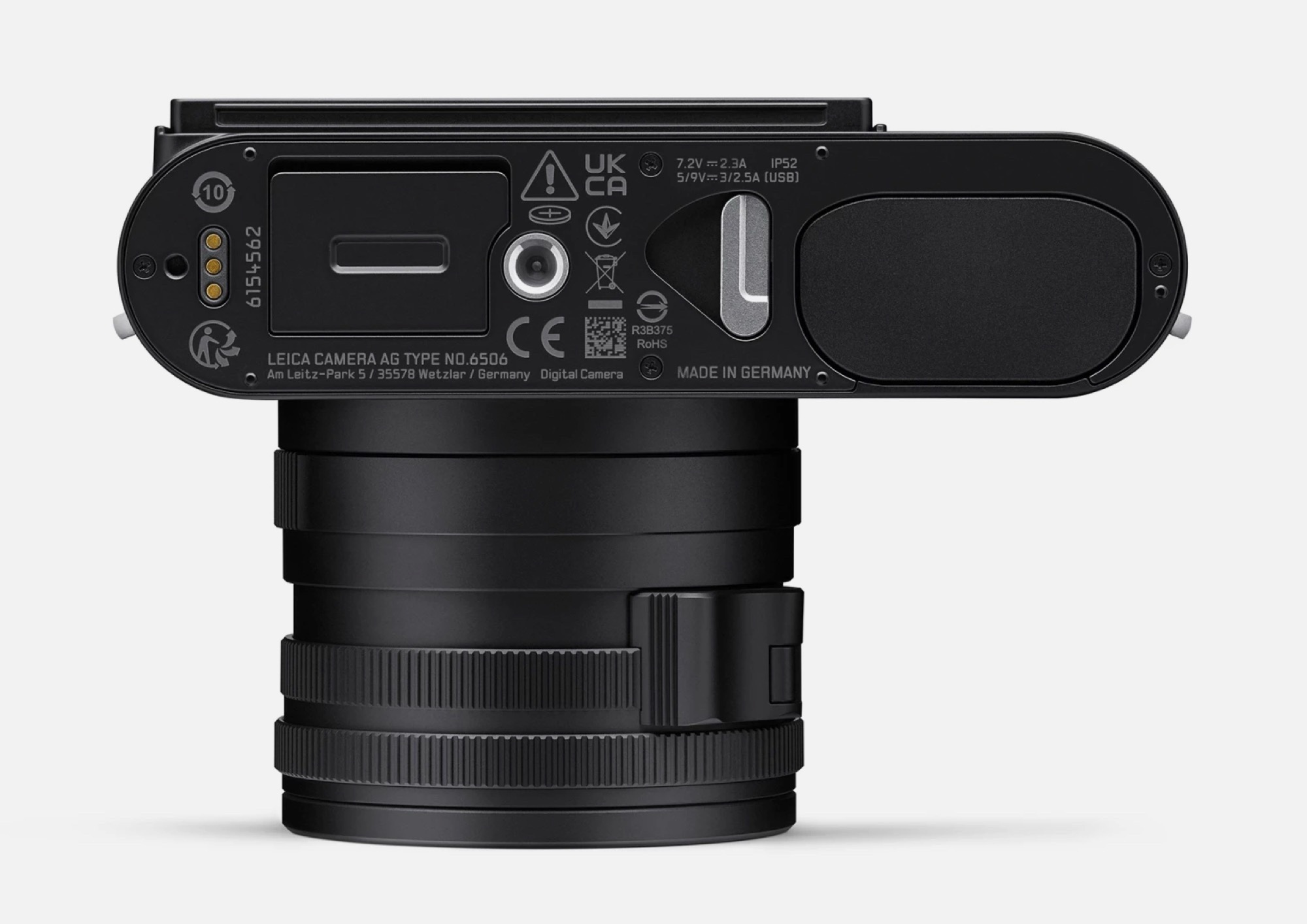 Le design présenté sur cette photo présente deux avantages par rapport au Leica M11. Tout d'abord, le curseur qui libère la batterie du boîtier peut être actionné plus facilement dans sa nouvelle position lorsqu'une plaque de fixation rapide est attachée à l'appareil photo. Deuxièmement, Leica ajoute trois contacts métalliques pour les accessoires. Sur le Leica Q3, ces contacts sont utilisés pour une poignée qui permet à l'appareil de se recharger sans fil sur un socle de recharge Qi.