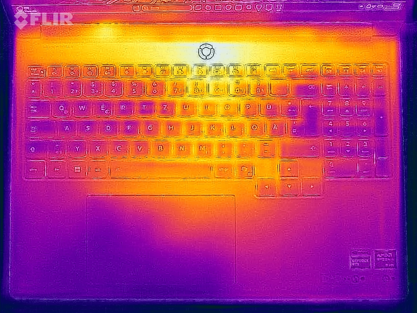 Lenovo a mis en place un clavier très confortable avec une course de touche de 1,6 mm et un rétroéclairage RVB (24 zones). Vous disposez également de grandes touches fléchées et d'un pavé numérique dédié, même si ces touches sont légèrement plus étroites. Ce clavier est idéal pour les jeux et les activités quotidiennes. Le pavé tactile est légèrement décalé vers la gauche et offre de bonnes capacités de glissement. Il ne fait pas de bruit, mais les clics mécaniques dans la partie inférieure sont assez bruyants.