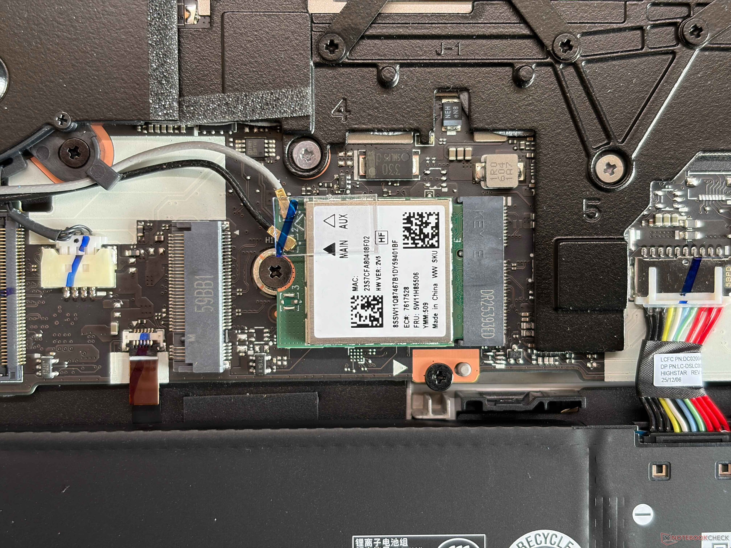 La connectivité est solide avec deux ports USB-C, HDMI ainsi que deux ports USB-A classiques. Vous disposez également d'un lecteur de carte SD rapide, même si la norme SD Express n'est pas prise en charge. Le Legion prend également en charge la dernière norme Wi-Fi 7, mais les taux de transfert du module RealTek 8922AE sont tout juste corrects. Néanmoins, nous n'avons rencontré aucun problème de connectivité durant notre période d'évaluation. Un connecteur Ethernet n'est pas disponible. L'appareil photo de 5 MP (e-shutter) prend des images décentes.