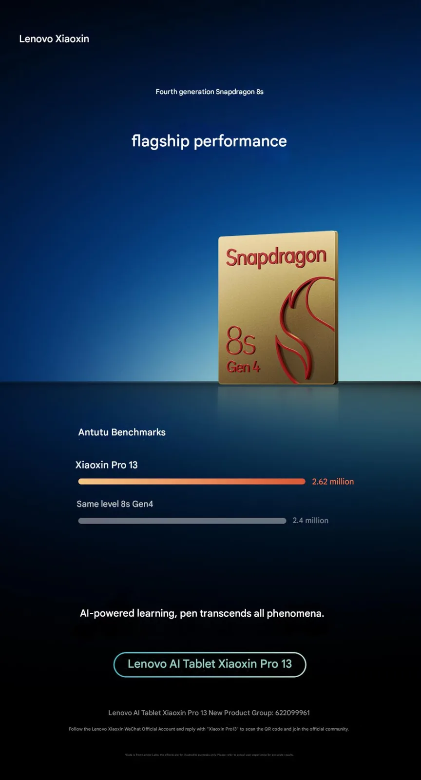 La Xiaoxin Pro 13 combinera les éléments suivants Snapdragon 8s Gen 4 avec un écran de 13 pouces d'une résolution de 3 504 x 2 190 pixels avec un taux de rafraîchissement de 144 Hz et une luminosité maximale de 800 nits. Lenovo a déjà confirmé que la tablette sera compatible avec son nouveau Stylus Pro. Les autres détails matériels restent cependant inconnus pour l'instant.