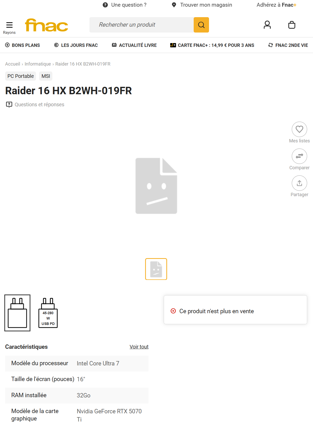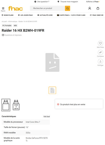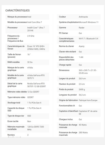 Aujourd'hui, il semble qu'une série d'ordinateurs portables de jeu moins puissants équipés du Core Ultra 7 251HX se profilent à l'horizon. Pour référence, Lenovo vend déjà une variante du Legion 5i équipée du Core Ultra 7 251HX sur Amazon. La Fnac a également révélé qu'une nouvelle version du Raider 16 HX B2WH serait équipée du même processeur.