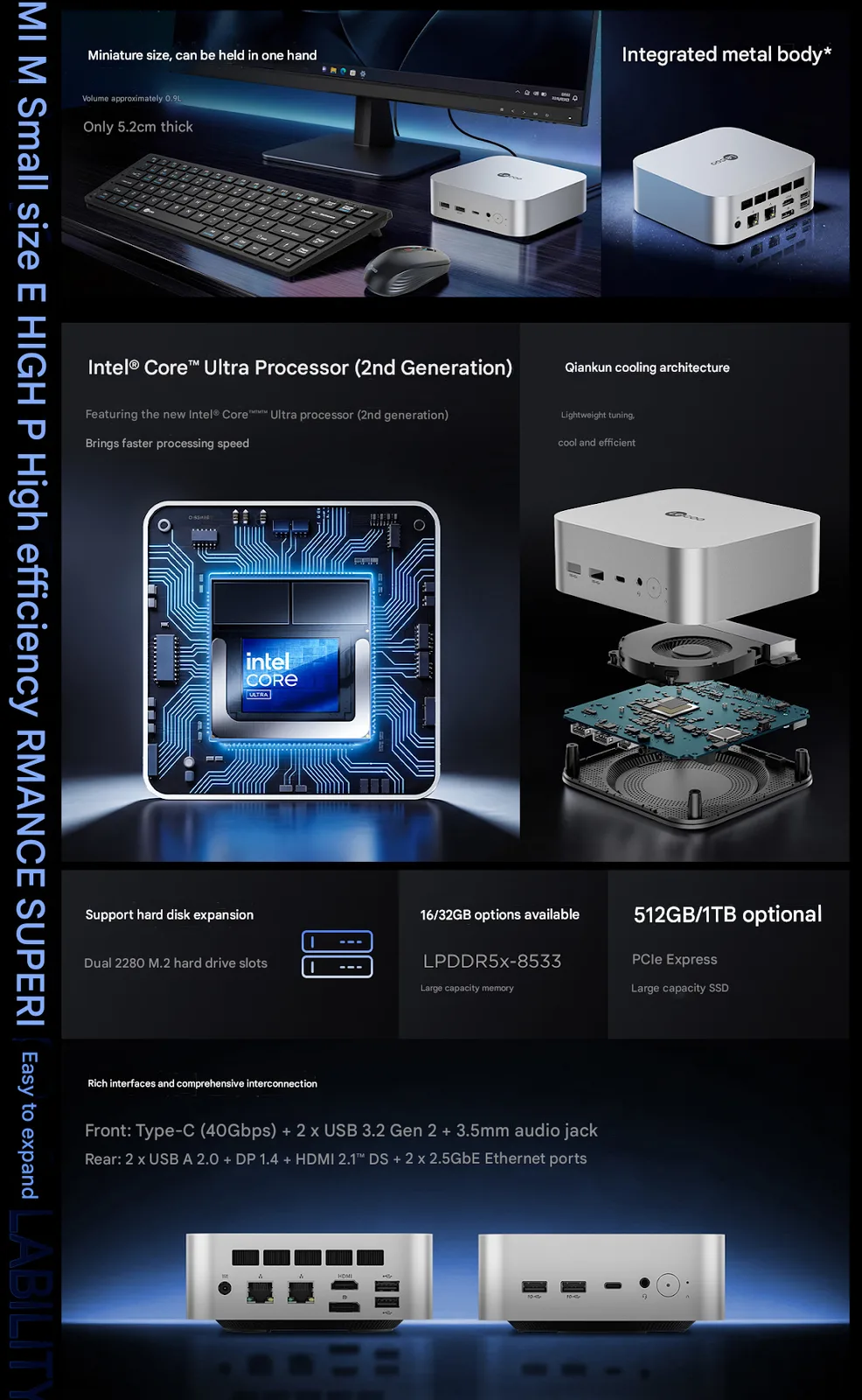 Alors que Lenovo a récemment lancé un nouveau mini PC Panther Lake, le Lecoo AI Mini Pro est propulsé par la dernière génération, le Lunar Lake. Plus précisément, le système est proposé avec trois options de CPU.