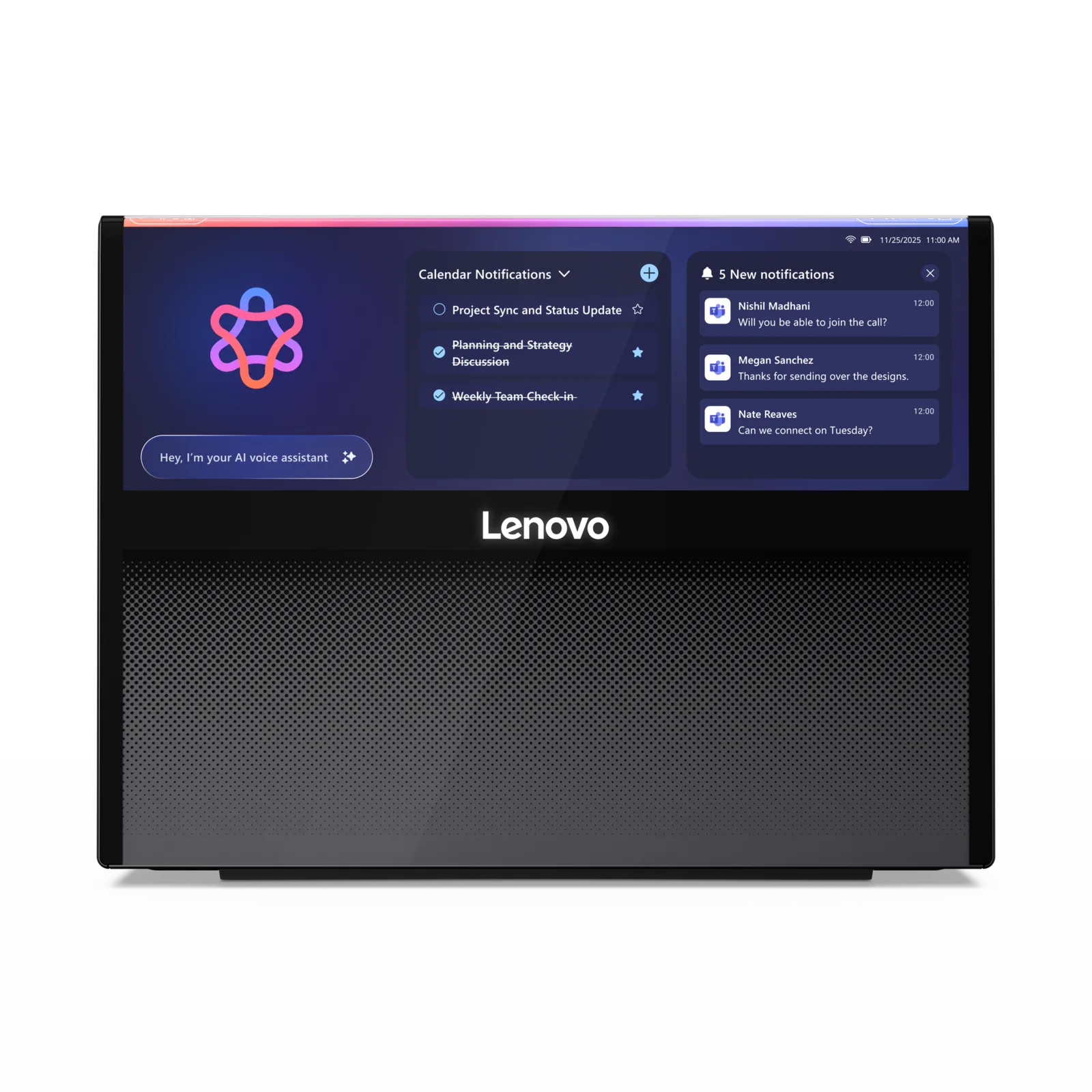 Lenovo décrit ce dispositif comme faisant partie de ses recherches plus larges sur les facteurs de forme intelligents et contextuels plutôt que comme un produit commercial. Aucune spécification matérielle, aucun prix ni aucun détail sur la disponibilité n'ont été annoncés à ce jour.