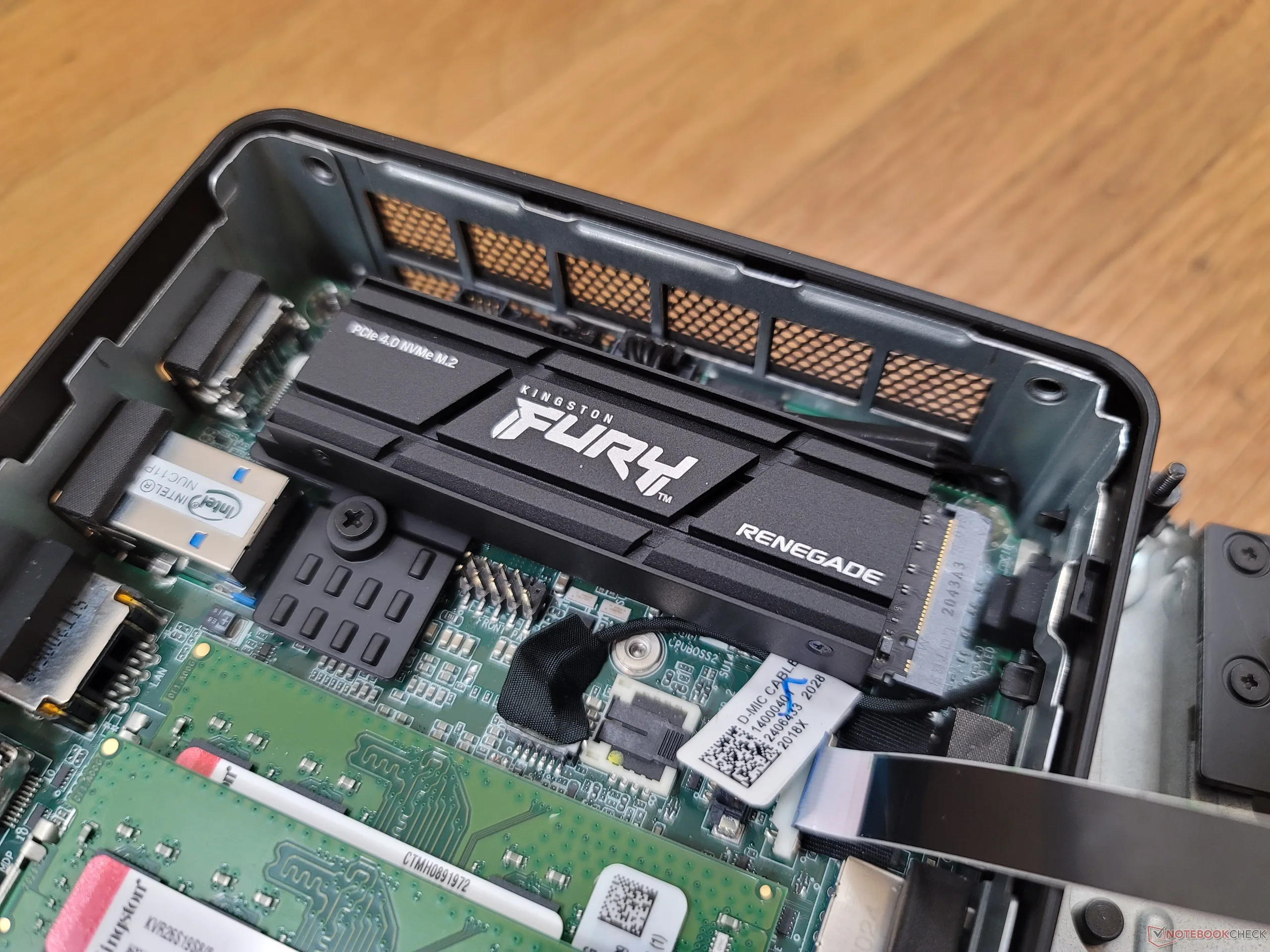 Pour notre PC hôte, nous avons utilisé le même mini PC Intel NUC11 qui prend en charge les SSD NVMe PCIe4 x4. Le châssis comprend son propre dissipateur thermique pour SSD, mais nous utilisons uniquement le dissipateur thermique fourni avec le disque Kingston.