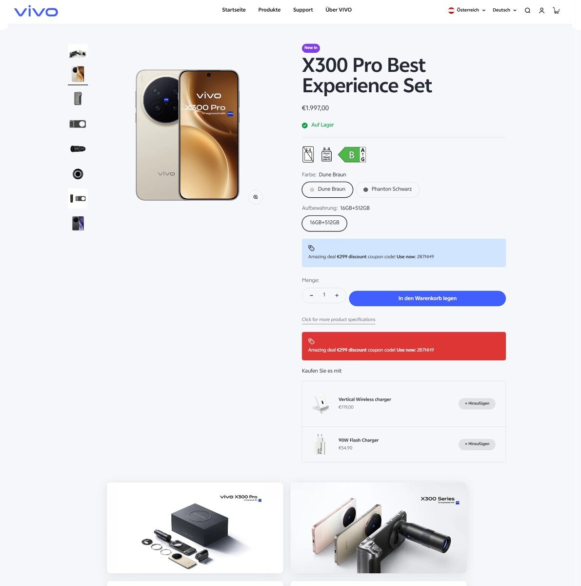 Comme nous l'avons évoqué en début de semaine, Oppo a fixé le prix des Find X9 et Find X9 Pro à 999 € et 1 299 € dans la zone euro. Pour une raison ou une autre, Vivo a appliqué un supplément de 50 € sur ses smartphones comparables, bien qu'ils aient été commercialisés plus tard qu'Oppo. Par conséquent, la série X300 sera proposée à partir de 1 049 euros dans la zone euro, avant d'inclure des accessoires tels que le kit d'extension téléobjectif, qui sera vendu 399 euros, soit 50 euros de moins que l'équivalent d'Oppo. Toutefois, Vivo proposera divers codes de réduction au moment du lancement, ce qui devrait permettre de faire baisser les prix sur l'ensemble du marché. Pour plus de détails, consultez les images ci-dessous.