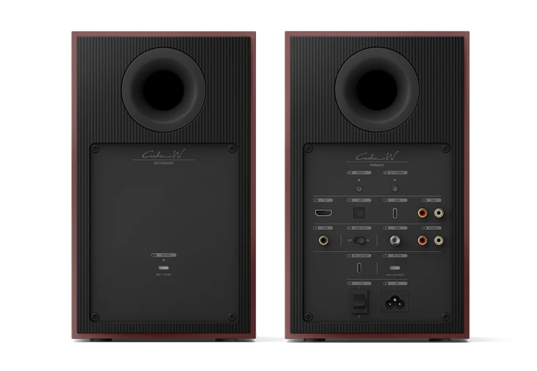 Mesurant 28,5 x 16,8 x 26,8 centimètres, les enceintes Coda W sont légèrement plus grandes, mais elles offrent également un plus large éventail de fonctions. Le Bluetooth 5.4 est pris en charge, y compris Qualcomm aptX Lossless pour un streaming sans perte de musique de qualité CD. Les ports disponibles sont HDMI, AUX, Toslink et USB-C, ce qui permet d'utiliser le Coda W dans le cadre d'un home cinéma ou simplement sur un bureau. Une particularité est le préamplificateur phono intégré, qui permet de connecter une platine vinyle directement aux enceintes.