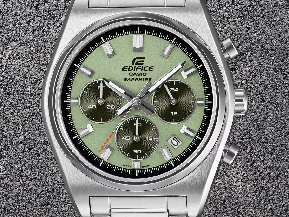 L'Edifice EFB-730 de Casio est dotée de trois aiguilles analogiques, dont la précision est estimée à 20 secondes par mois. Elle comporte un affichage de base de la date et trois sous-cadrans, dont l'un indique l'heure au format 24 heures. Les deux autres cadrans, plus petits, sont reliés au chronomètre à une seconde et affichent les secondes et les minutes écoulées. Ces montres sont étanches à 100 m et devraient fonctionner pendant environ trois ans avec une pile SR920SW.