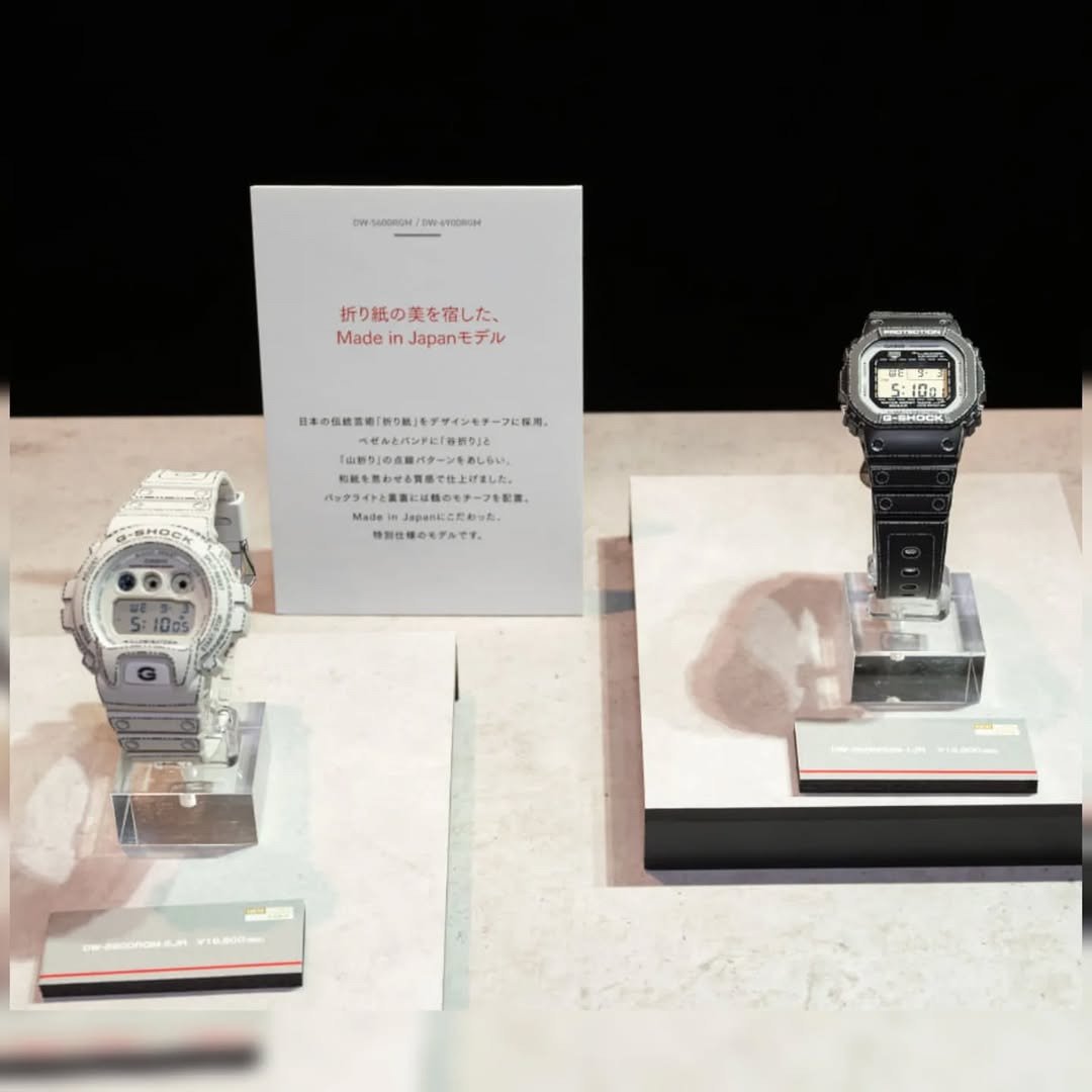Les G-Shocksles G-Shocks de Casio sur le thème de l'origami ont été officialisées depuis un petit moment maintenant, et les premières photos du monde réel montrent exactement pourquoi ces nouveaux modèles font l'objet d'un grand battage médiatique. La G-Shock DW-5600RGM-1 est disponible en noir et DW-6900RGM-5 est habillée d'un design blanc semblable à un pli de papier. Les deux modèles sont vendus au prix de 19 800 ¥ (~129 $) avec des motifs de grues et un emballage spécial, très similaire aux anciennes G-Shock "Manga" de Casio dont la production a été arrêtée et qu'il est assez difficile de se procurer.