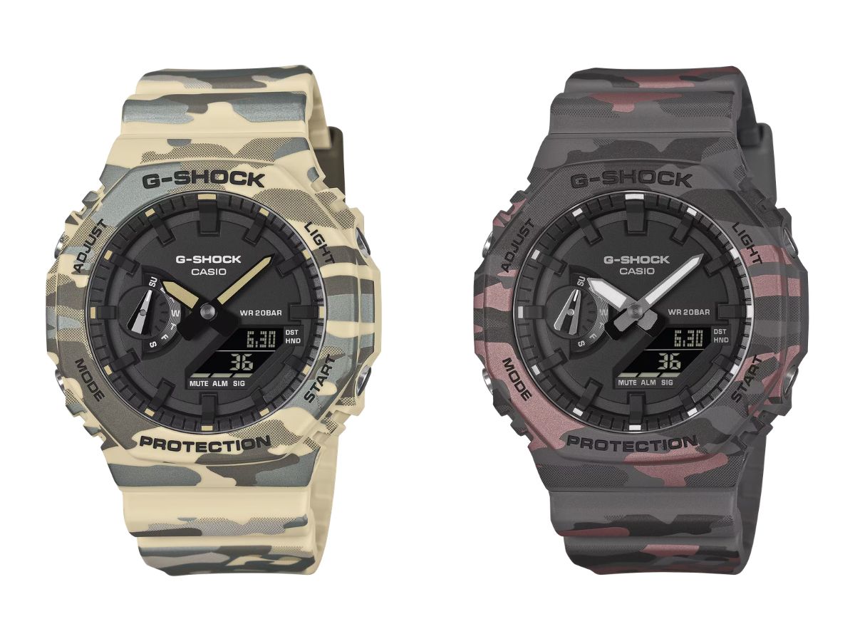 Casio a lancé les nouvelles montres camouflage G-Shock 2100 Series au Royaume-Uni. La gamme comprend trois variantes - la GA-2100CM-5A, la GA-2100CM-8A et la Casio G-Shock GA-2100CMD-8A - qui ont été lancées au Japon au début de l'année 2026 lancé au Japon plus tôt en février 2026.