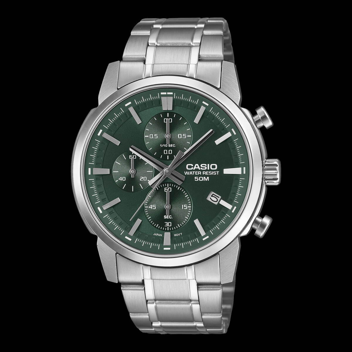 Casio étend sa gamme de chronographes économiques en octobre avec de nouvelles variantes de couleurs dans la série MTP-E510D, avec des options en vert, bleu et marron. Les nouveaux modèles semblent avoir pour objectif de proposer des prix accessibles, des spécifications simples et une construction métallique qui se situe entre la norme Casio classique et le look des modèles plus onéreux de la série MTP-E510D Edifice plus onéreuse. Ces montres ne ressemblent pas aux montres à petit cadran que l'on trouve habituellement dans la série MTP.