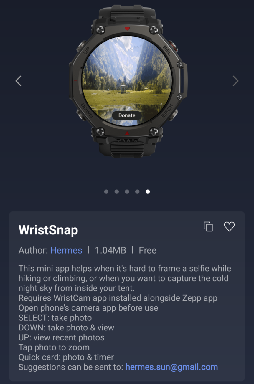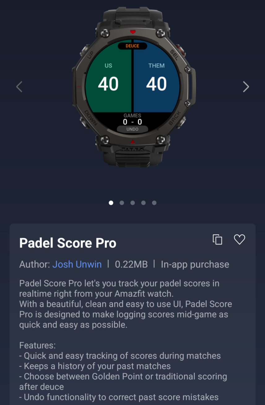 D'après un récent message de Zepp Health sur Discord ( )une nouvelle application WristSnap Mini est désormais disponible sur le Zepp App Store. Elle peut être utilisée pour faciliter la prise de photos sur votre smartphone connecté. Une nouvelle mini-application Baromètre permet aux utilisateurs de vérifier la pression atmosphérique en temps réel et de consulter les données enregistrées au cours de la semaine écoulée. La dernière nouvelle mini-application est Padel Score Pro ; comme son nom l'indique, elle est conçue pour vous permettre de suivre vos scores de padel sur votre smartwatch Amazfit. Il convient de noter que cette dernière application propose des achats in-app.