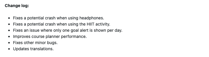 De plus, la version 16.37 comprend une série de corrections de bugs. Garmin s'est attaqué à deux problèmes susceptibles de provoquer un plantage inattendu de la vivoactive 6 et des smartwatches associées : lors de l'utilisation d'écouteurs ou de l'activité HIIT. En outre, un problème qui faisait que les utilisateurs ne recevaient qu'une seule alerte d'objectif par jour a été résolu.