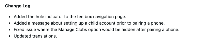 Dans le journal des modifications figure également une correction de bogue liée à la fonction Gérer les clubs. Le problème qui consistait à masquer inopinément cette fonction lors de l'appairage d'un smartphone a été résolu. En outre, la version apporte des traductions mises à jour à la smartwatch de golf.