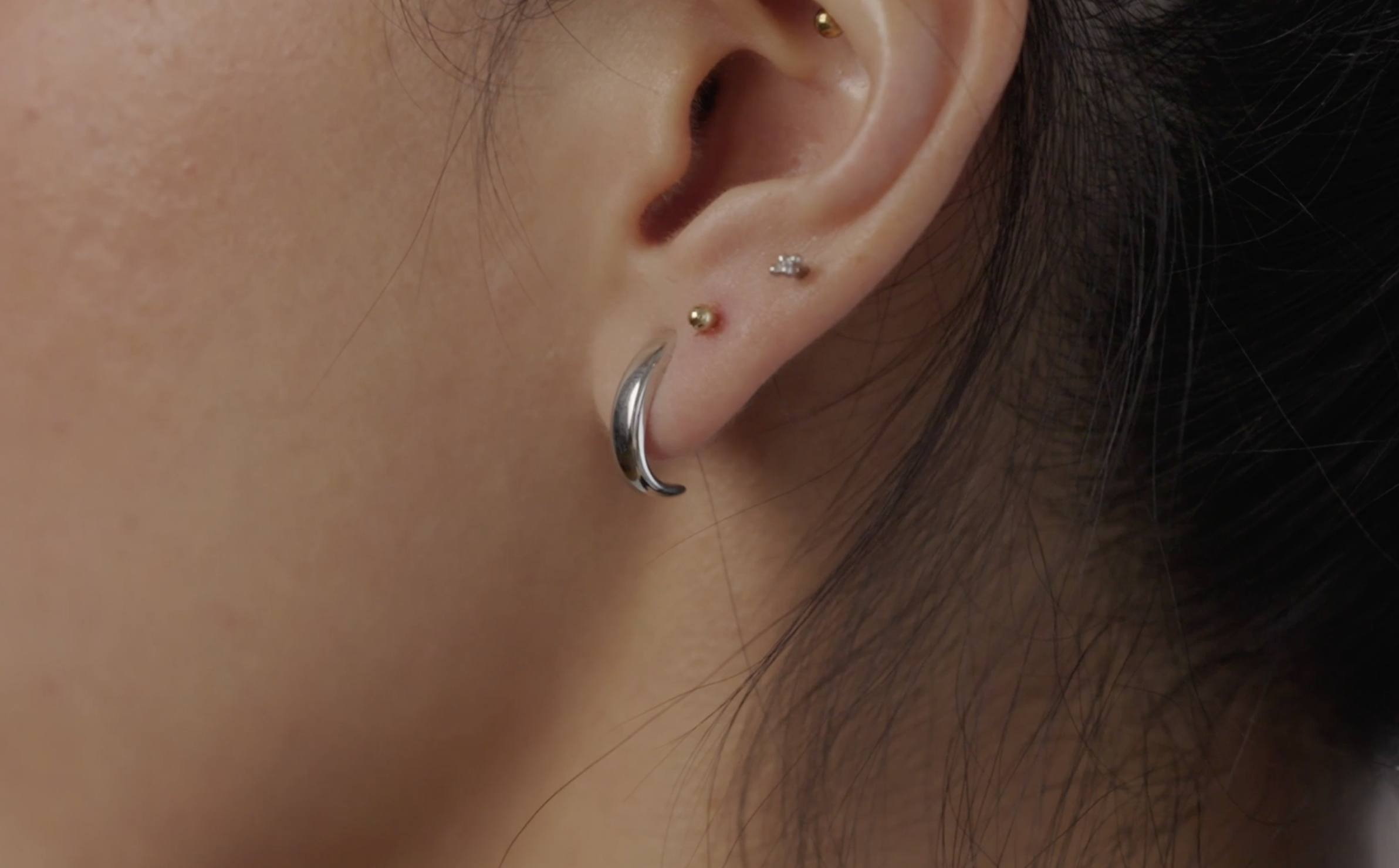 Indiscernable d'un bijou fin, Lumia 2 peut être porté sous forme de huggie hoops, de manchettes et de clous d'oreilles en or et en argent. Grâce à la technologie SwitchBack™ en instance de brevet, il se fixe même à n'importe quelle boucle d'oreille push-back. La version manchette ne nécessite aucun perçage.