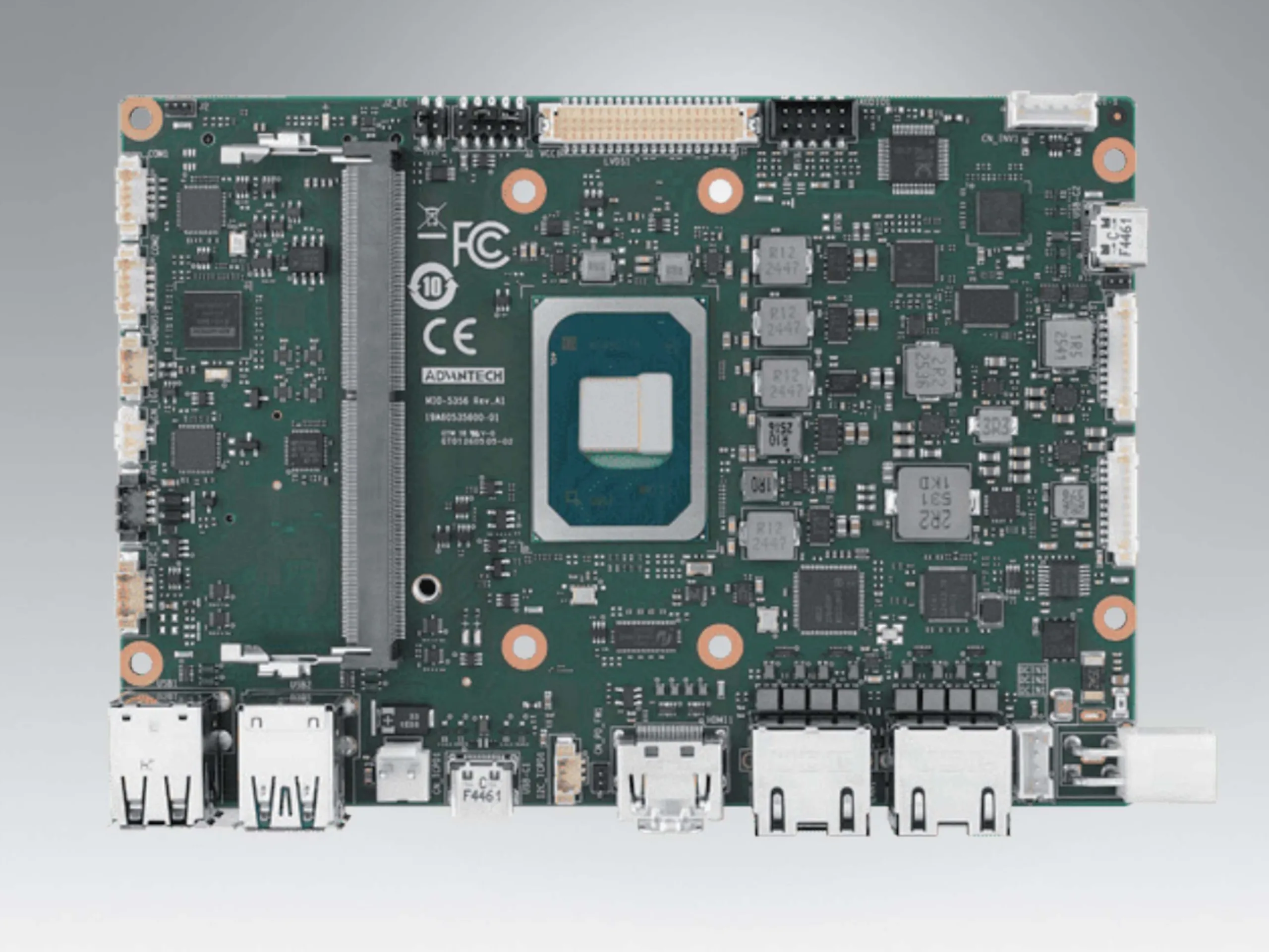 Le site Advantech MIO-5356 est une carte mère relativement compacte avec un SoC intégré. Le fabricant commercialise le système en tant qu'ordinateur monocarte, bien que tous les composants nécessaires au fonctionnement ne soient pas réellement intégrés. Par exemple, il faut encore installer une mémoire vive DDR5 d'une capacité maximale de 64 Go. Il n'y a pas non plus de stockage embarqué, de sorte qu'un SSD M.2 sera généralement utilisé pour le stockage rapide.