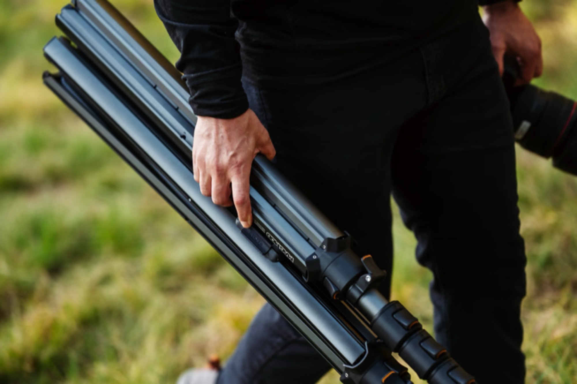 Elle commence par la colonne centrale, qui peut être déverrouillée à l'aide de deux boutons situés à l'extrémité de chaque segment et qui se verrouille automatiquement en place lorsque ces boutons sont relâchés. Cela permet de régler la hauteur beaucoup plus rapidement qu'avec un collier à vis ou un verrou à bascule. La colonne centrale peut être échangée pour modifier la hauteur maximale, et MagMod propose des versions avec une hauteur maximale de 9 ou 11 pieds. Les pieds peuvent être allongés avec un système de verrouillage similaire.