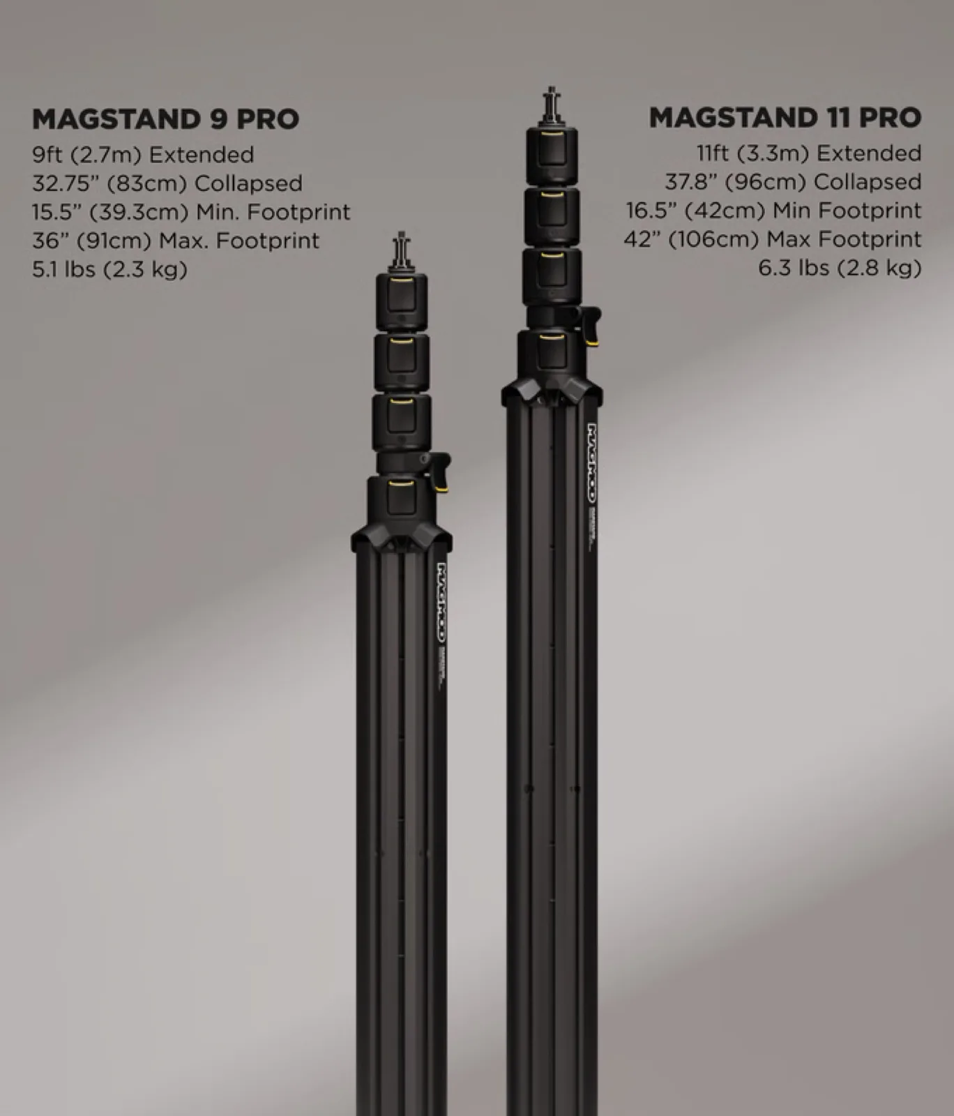 Toutes ces caractéristiques et la construction en aluminium présentent un inconvénient majeur : le MagStand est extrêmement lourd. Même la version la plus petite pèse 5,1 lb, et la version la plus grande 6,3 lb. En comparaison, un support de lumière en fibre de carbone de base comme celui de Soonpho ne pèse que 1,3 lb.