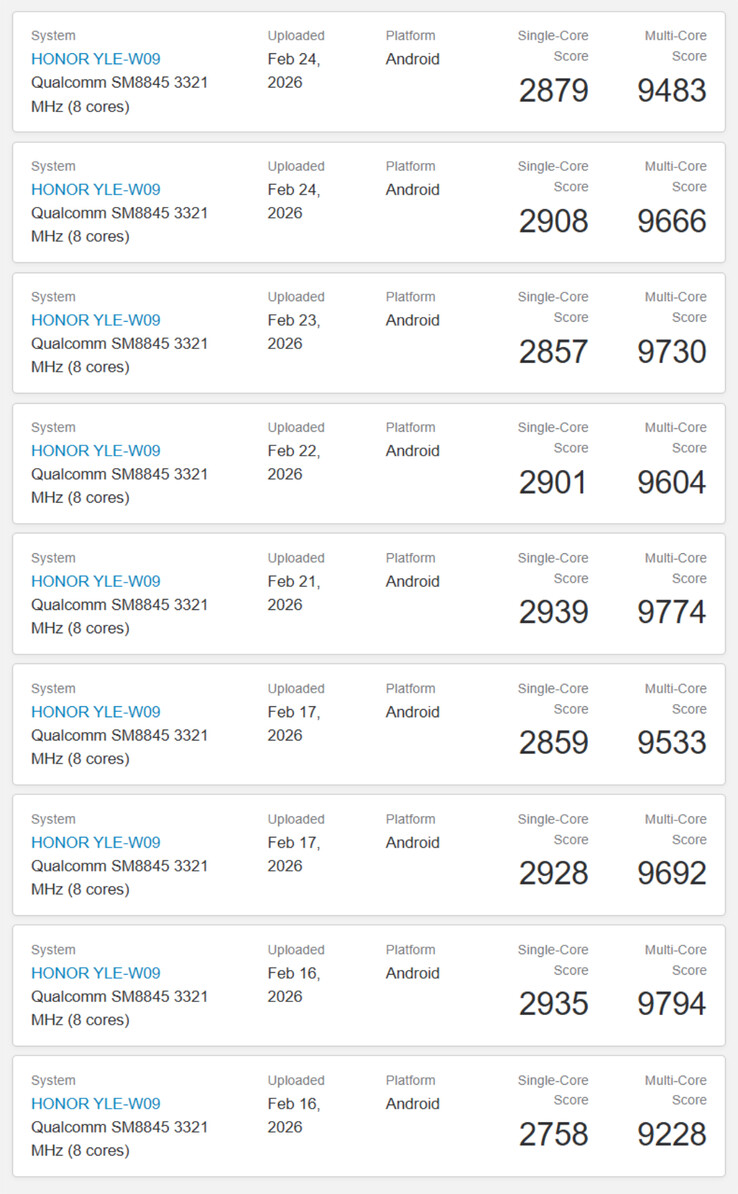 Comme toujours, Geekbench fournit un numéro de modèle plutôt qu'un nom de vente. Cependant, Honor a déjà confirmé que le MagicPad 4 est associé au numéro de modèle "YLE-W09". Nous soupçonnons donc que les résultats reproduits ci-dessous ont été obtenus par des évaluateurs avant la sortie officielle de la tablette le 2 mars.