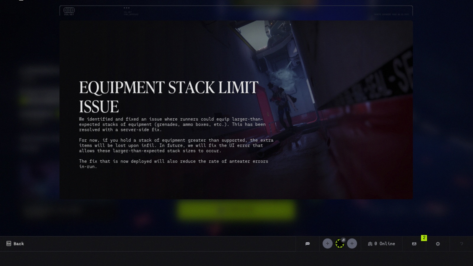 Nos captures d'écran montrent également que Bungie teste une file d'attente expérimentale pour les duos dans le Périmètre pendant deux semaines à partir du 18 mars, ainsi qu'un correctif côté serveur pour un problème de limite de pile d'équipement qui, selon Bungie, devrait également réduire les erreurs de tamanoir pendant les courses. Un autre avis en jeu indique que le mode classé et des activités supplémentaires dans les archives cryogéniques sont également en cours d'élaboration.
