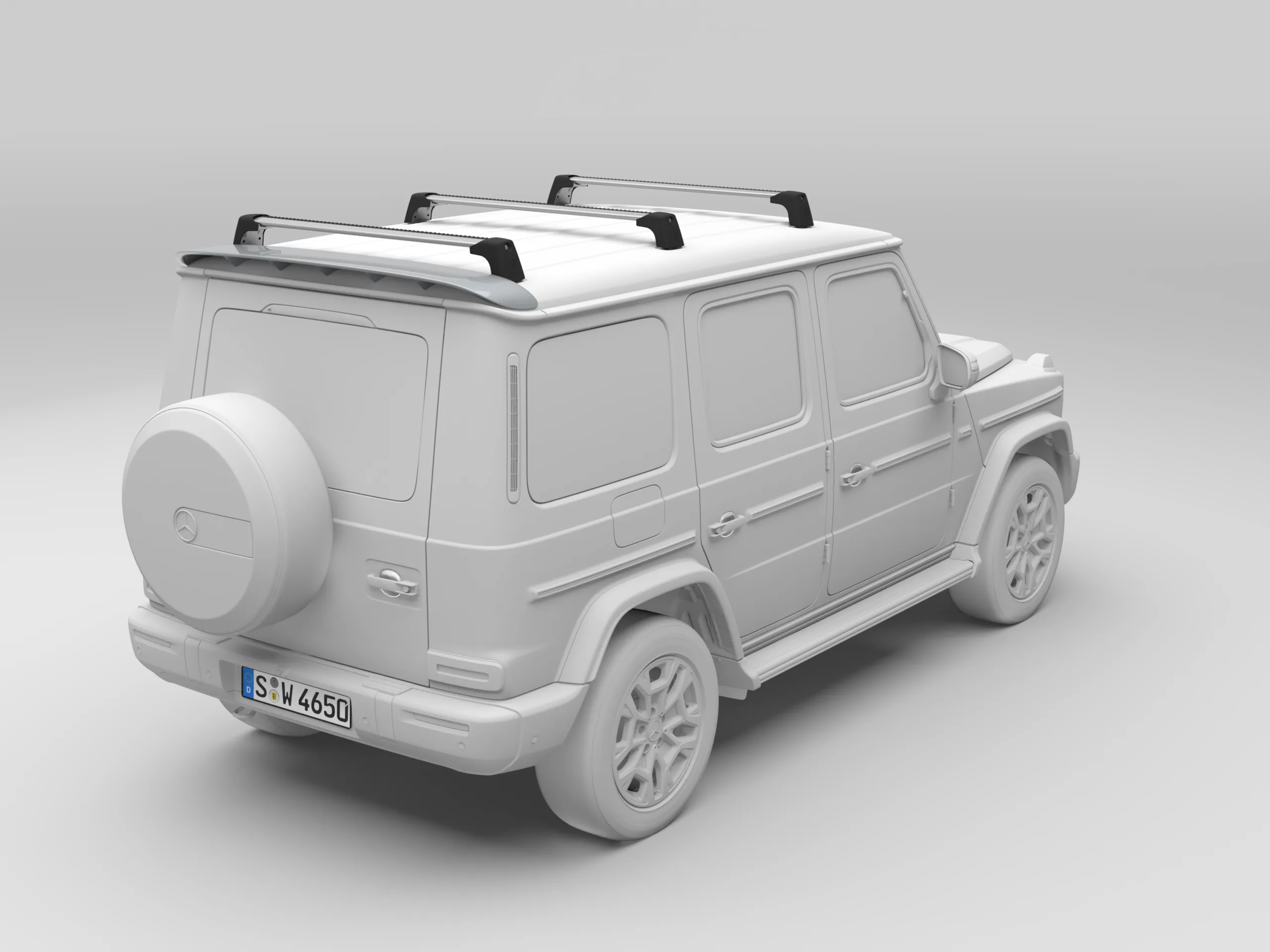 Malgré le camouflage important du prototype, des feux diurnes ronds sont visibles à l'avant, qui sont également inspirés de la Classe G de taille normale et sont encastrés en conséquence. De plus, des barres de toit sont présentes, et les côtés présentent des passages de roue proéminents, trois vitres latérales de chaque côté et des poignées de porte en forme d'arc.