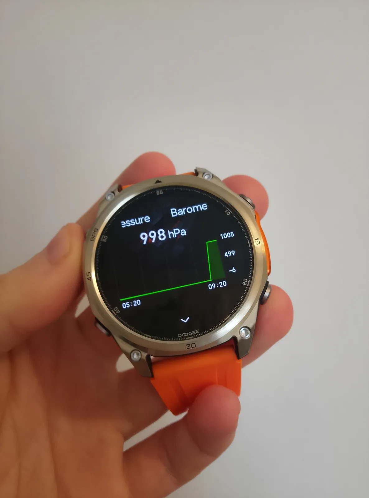 Le produit est étanche, la plongée jusqu'à une profondeur de 50 mètres étant officiellement autorisée, et il est également censé résister aux chutes. Deux chutes d'une hauteur d'environ 1 mètre sur une surface en béton brut n'ont causé aucun dommage visible. La montre dispose de 4 boutons matériels, ceux de droite, Menu et Retour, étant bien plus utiles que les deux autres. Bien qu'ils soient tous rotatifs, leur rotation dans un sens ou dans l'autre ne semble pas avoir d'effet.