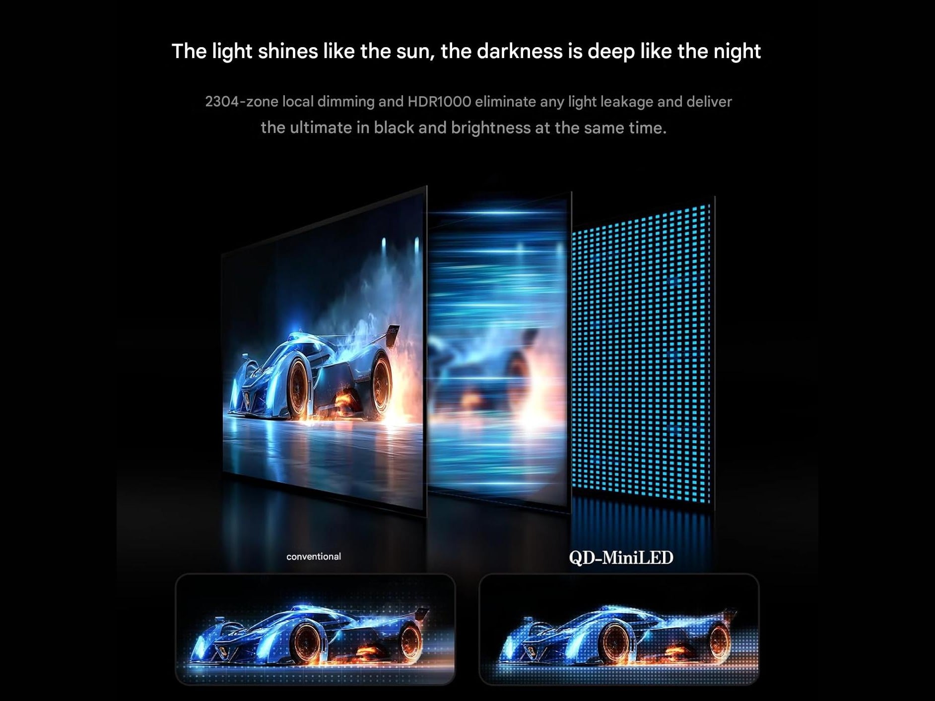 mini LED 2 304 zones pour un meilleur contraste et HDR