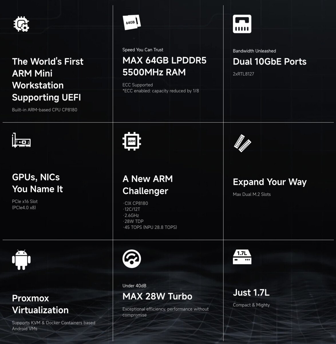 Décrit comme un nouveau "challenger ARM" doté d'une "puissance sérieuse", le MS-R1 ressemble à un mini-PC ou à une mini station de travail ordinaire, avec une apparence discrète et un boîtier de 1,7 litre. Cependant, le nouvel appareil s'appuie sur le CIX CP8180, un chipset à 12 cœurs et 12 threads avec un TDP de 28 W à sa disposition.