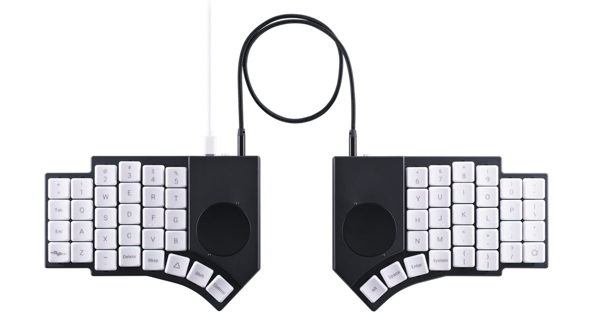 Le Go60 se distingue par ses deux pavés tactiles, qui occupent une position similaire à celle du pavé tactile unique du Glove80 Clavier mécanique sans fil Beekeeb Toucan dont nous avons parlé récemment. Les trackpads de 40 mm du Go60 sont circulaires et se situent au-dessus du groupe de pouces, ce qui les rend idéaux pour une utilisation avec un index tout en minimisant les mouvements latéraux.