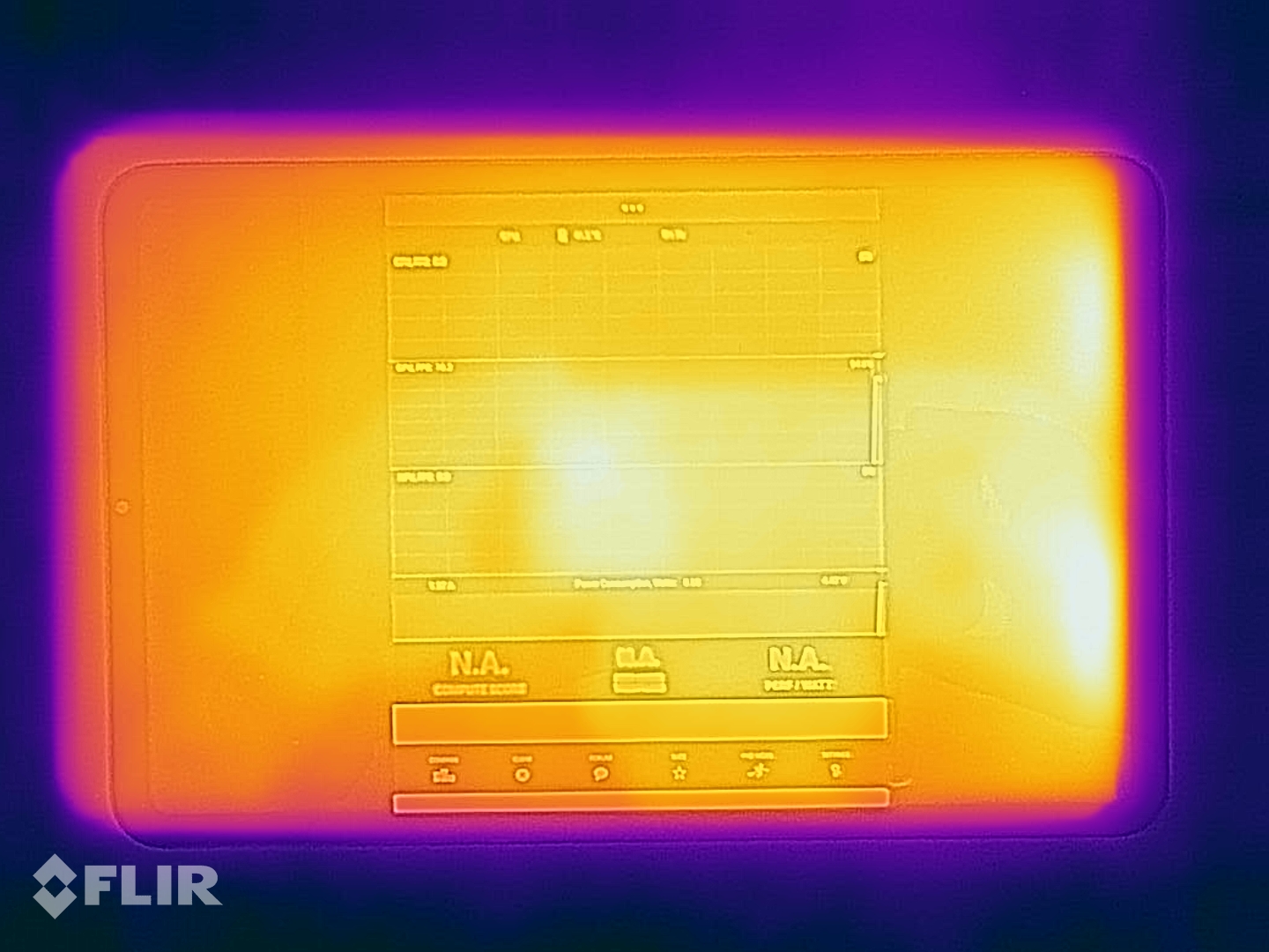 (±) La température maximale du côté supérieur est de 41.9 °C / 107 F, par rapport à la moyenne de 33.7 °C / 93 F, allant de 20.7 à 53.2 °C pour la classe Tablet.