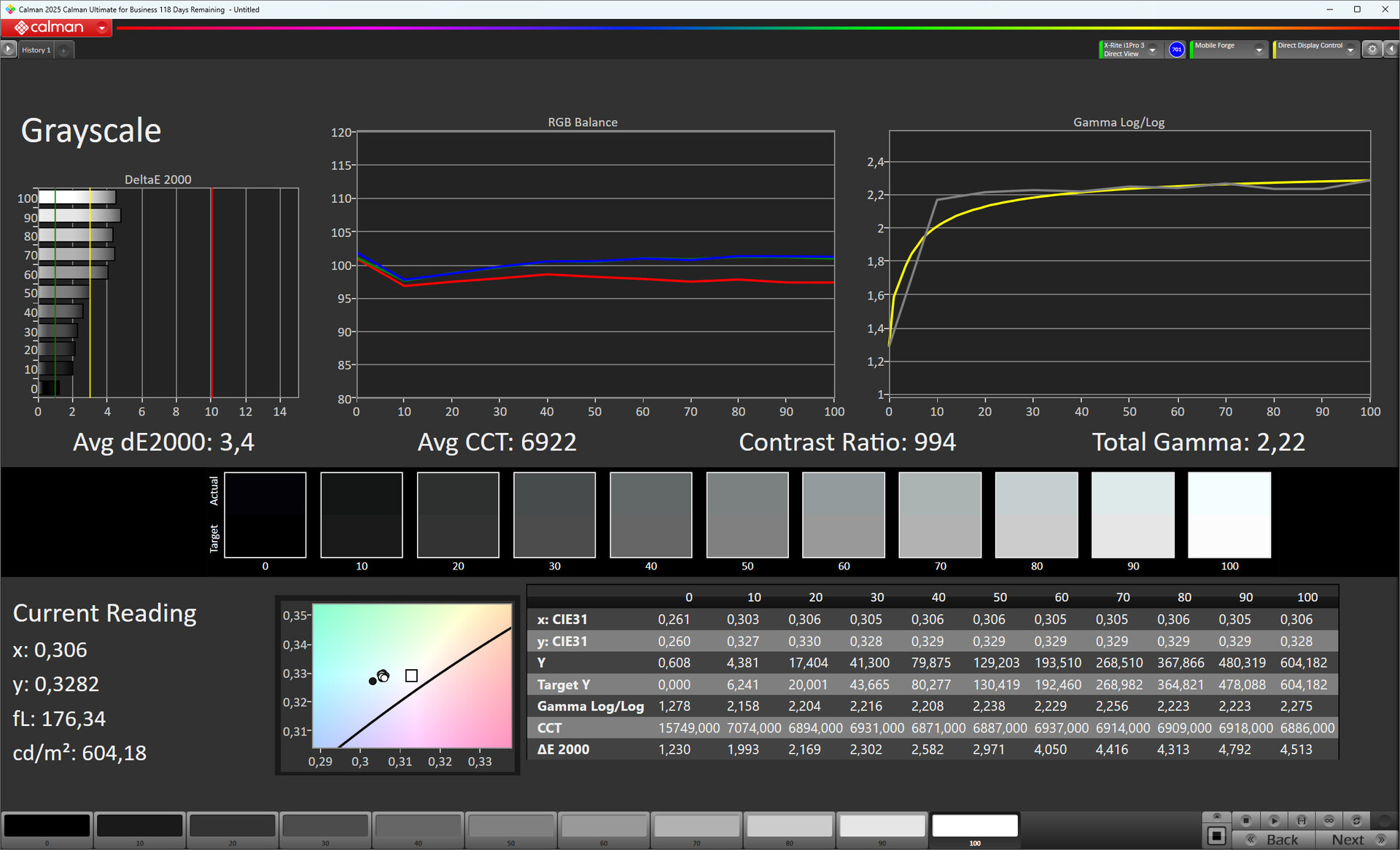 ΔE Greyscale Calman: 3.4 | ∀{0.09-98 Ø5}