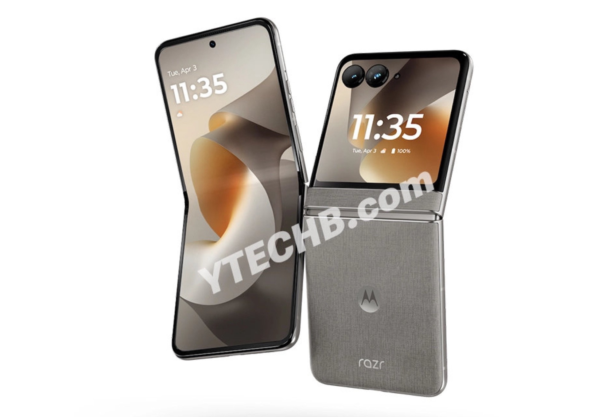 Après que le Motorola Razr 70 Ultra ait déjà été présenté dans des images prétendument images officielles du produitYtechb a publié les premières images du Motorola Razr 70, plus abordable, qui pourrait s'appeler Motorola Razr 2026 aux États-Unis. Les images montrent le smartphone pliable dans les couleurs Pantone Sporting Green (vert), Pantone Hematite (gris) et Pantone Violet Ice (violet).
