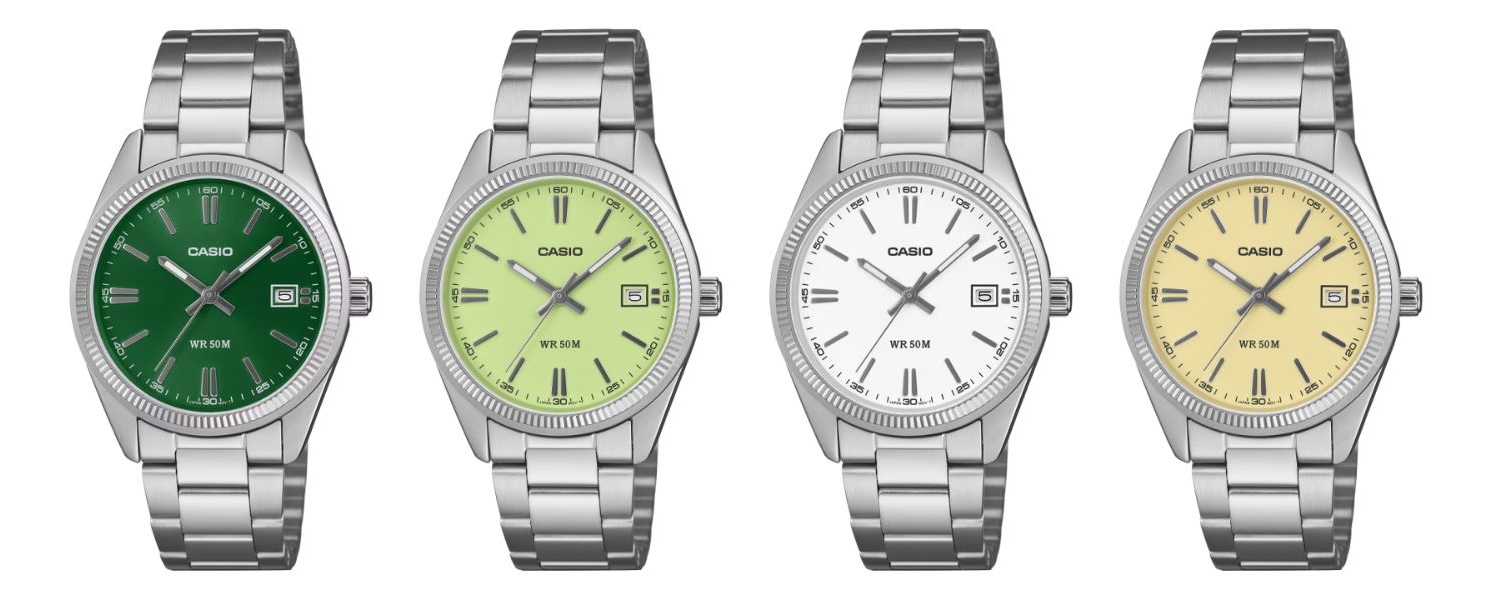 Deux autres versions - la UTP-1302PD-3A2V (cadran vert menthe) et UTP-1302PD-9AV (cadran jaune sable) - sont également apparues chez le détaillant français David et Philly. Ce site affiche un prix de vente conseillé de 59,90 € (~70 $) et indique une date de sortie en juin 2026 dans cette région. Si l'on se base sur le déploiement des montres précédentes, cela pourrait signifier que la série UTP-1302PD sera commercialisée au Japon, le marché d'origine de Casio, en mai 2026.