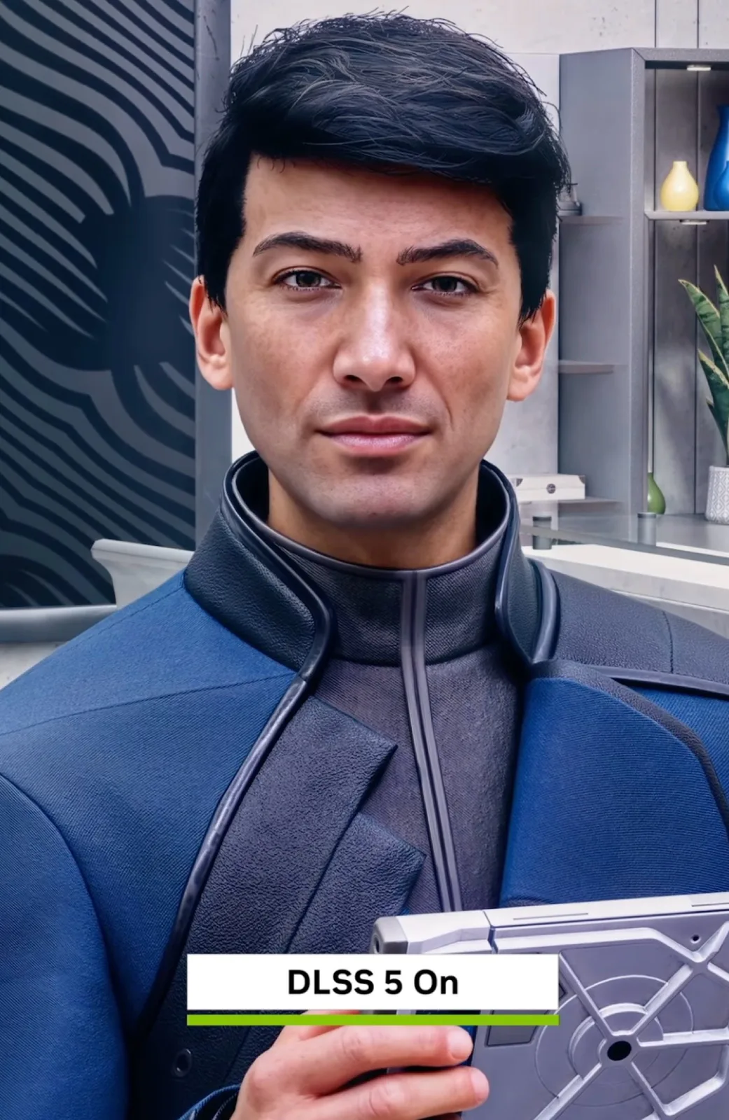 Au lancement, la technologie fonctionnera également sur des systèmes dotés d'une seule carte graphique, mais la configuration de cette démo laisse penser que DLSS 5 sera réservé aux cartes graphiques haut de gamme. DLSS 5 n'est pas destiné à modifier la géométrie ou les textures des jeux, mais ces derniers devraient paraître nettement plus réalistes lorsque DLSS 5 est activé grâce à l'éclairage généré par l'IA. Toutefois, comme le montre l'image de comparaison intégrée ci-dessous, DLSS 5 peut modifier l'apparence à tel point que les personnages des jeux sont à peine reconnaissables