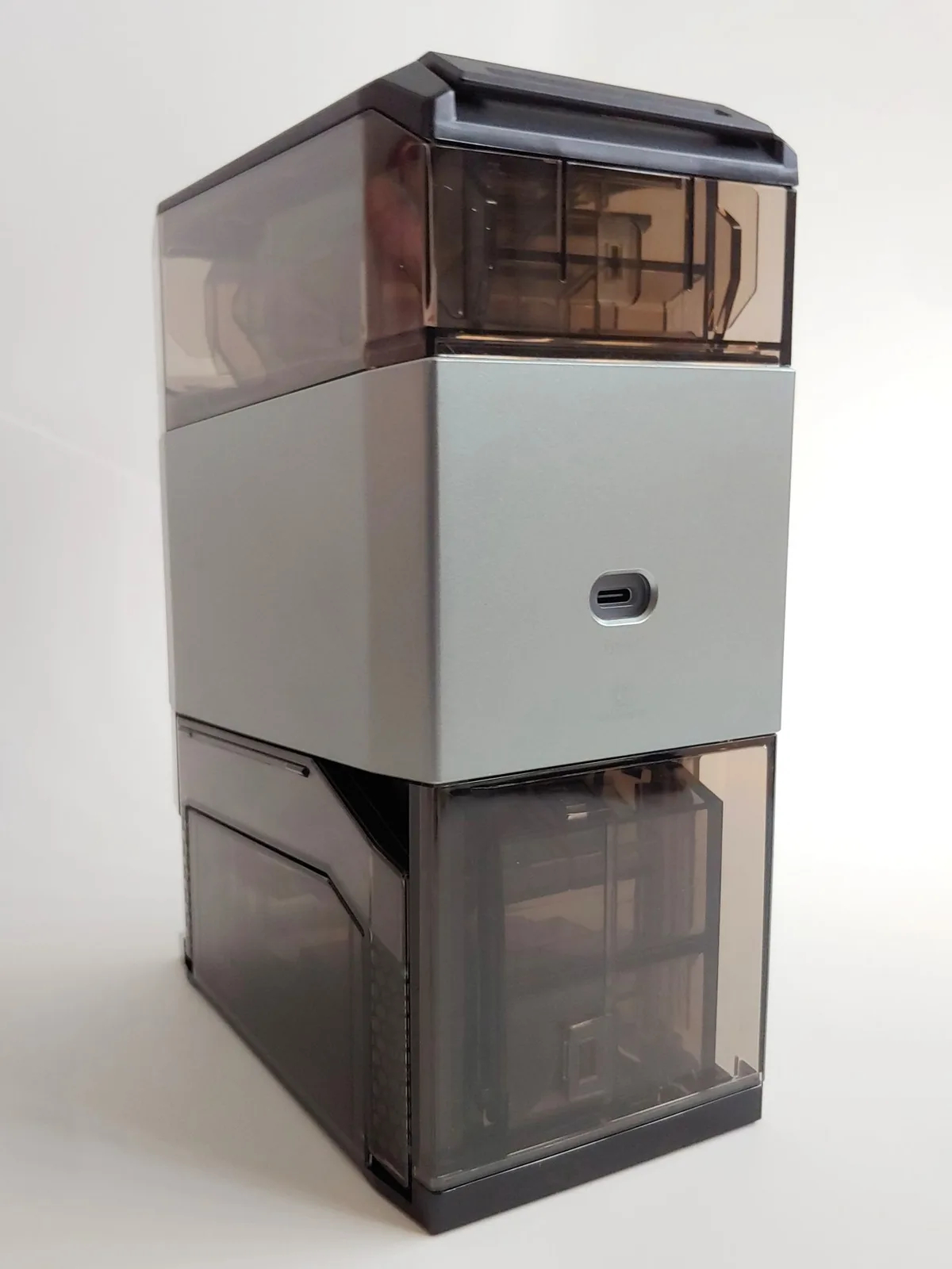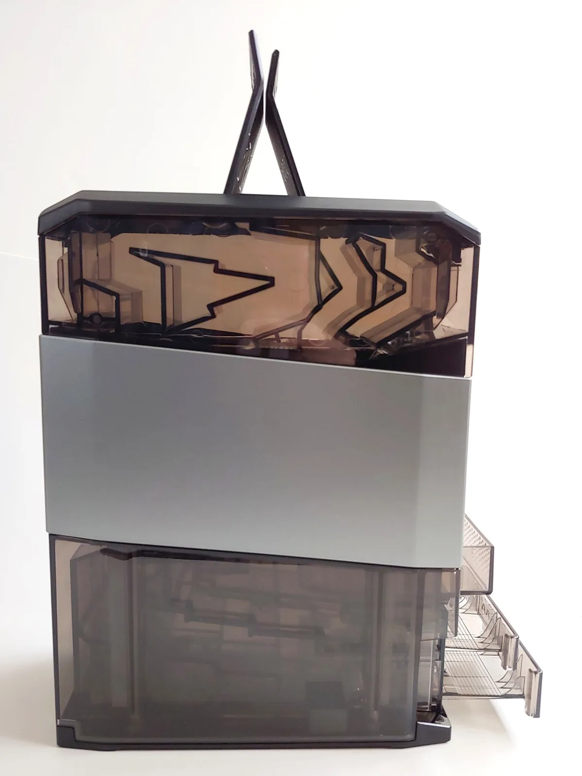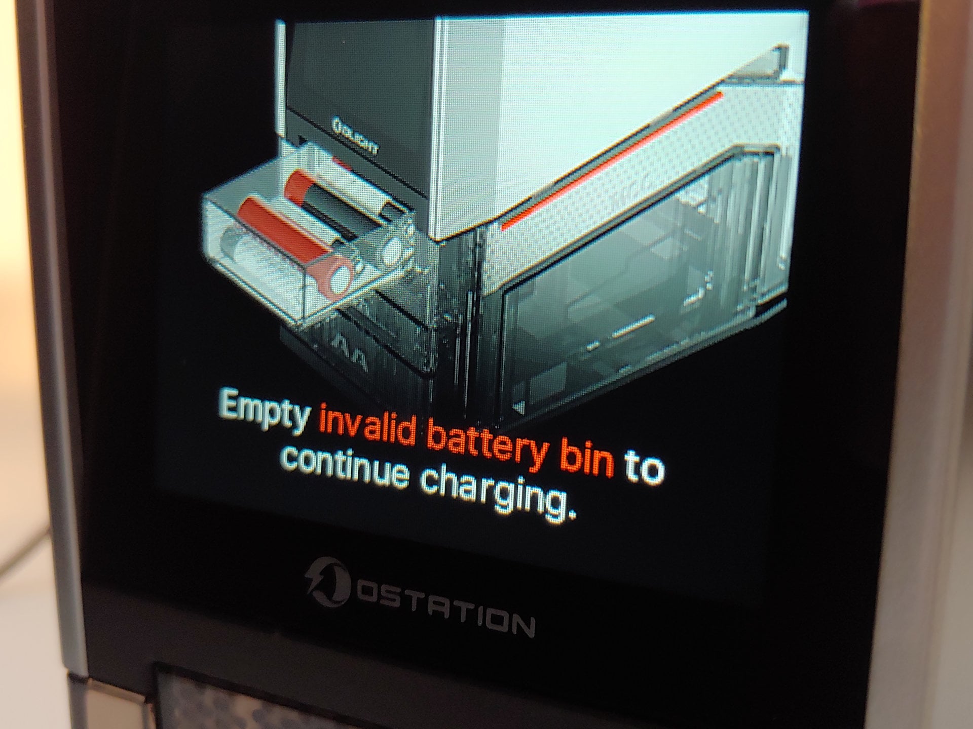 Le chargeur est conçu comme une tour. Les batteries sont chargées par le haut, tandis que les éléments chargés et défectueux sont déversés dans des plateaux situés à l'avant. La machine tourbillonne pendant plusieurs minutes à chaque démarrage pour vérifier la présence d'éléments dans les chargeurs et les paires de charge pour l'analyse et la charge. Jusqu'à 12 piles chargées de chaque type peuvent être stockées dans la machine, et les bacs AA et AAA sont conçus pour éjecter deux piles à la fois chaque fois qu'ils sont ouverts. Le bac pour les mauvaises piles n'a pas cette limite.